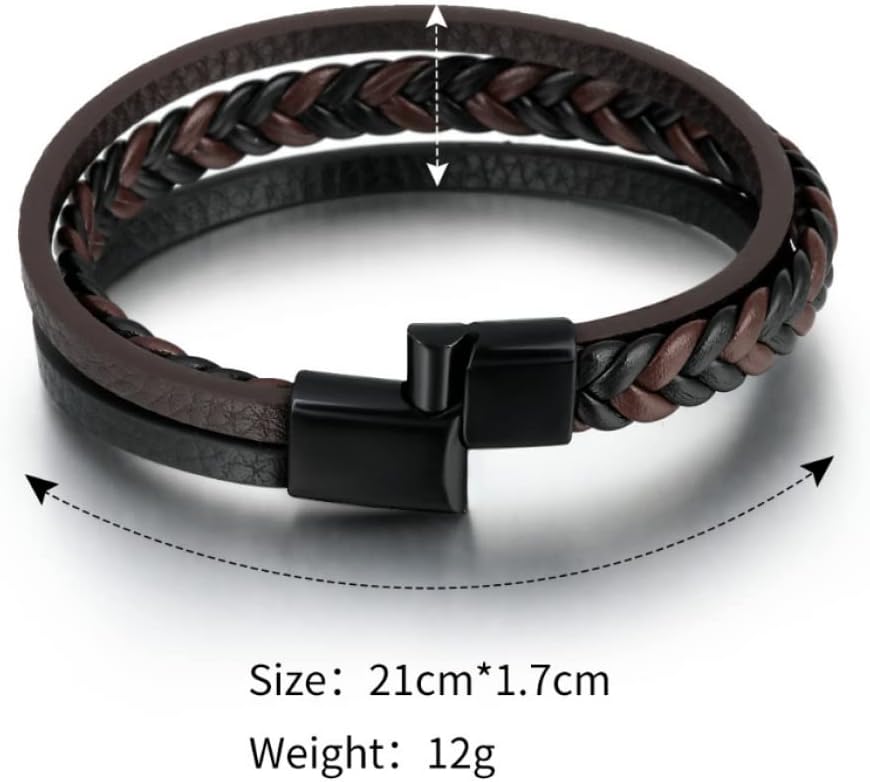 - Classic Style Men Leather Bracelet,Mens Bracelet Leather Braided,Measures: The selected bracelet has a length of 21cm.