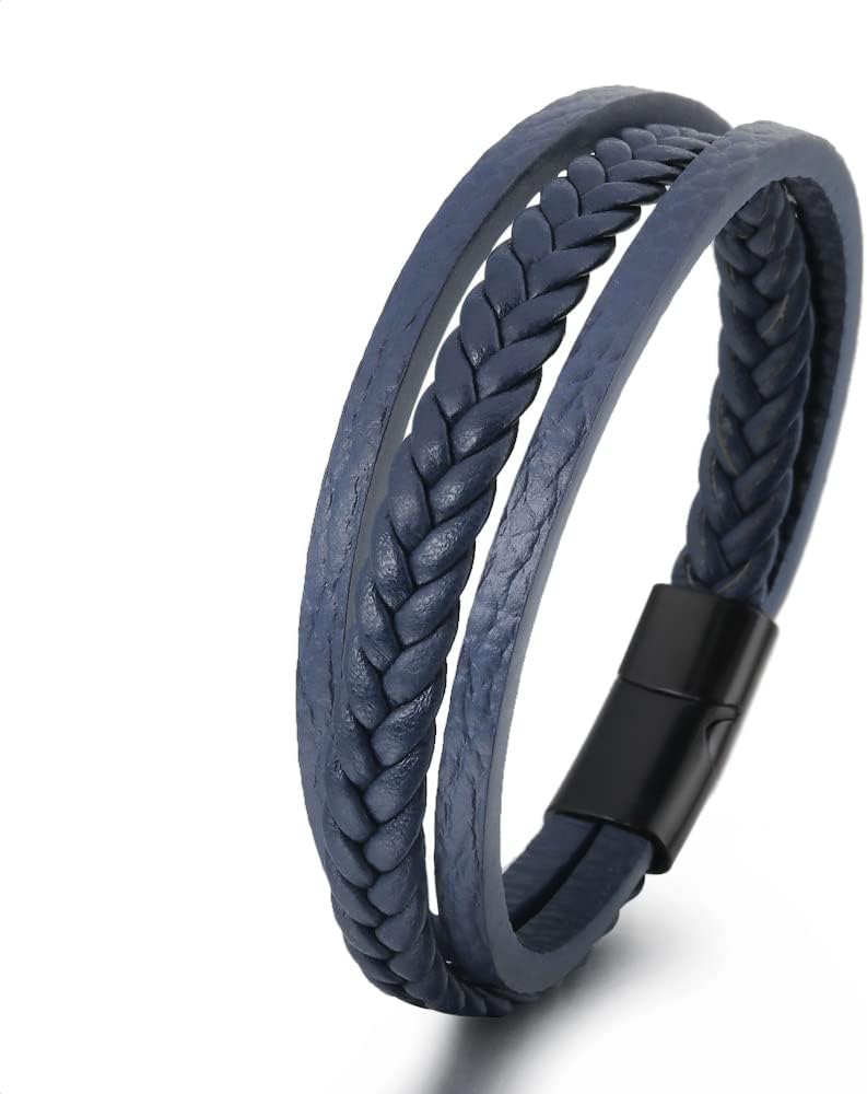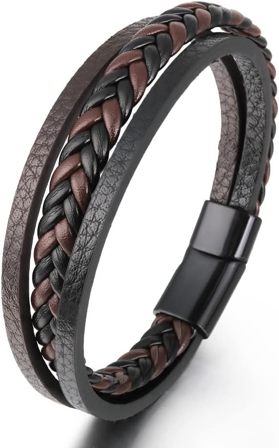 Magnetic Clasp Classic Multi-layer Men Bracelet,Black bracelet for men,High Quality: Braided leather, stainless steel ,rust-proof, nickel-free,and a strong magnetic clasp; only the highest quality materials are used for leather wristbands for men. Mens Genuine Leather Bracelet,Wristband Bracelet,Vintage Style: Black and brown, matching rate of the highest color, high-grade color can be matched in four seasons, can also meet different styles of wear. Vintage style, sturdy and durable. Braided Leather Bracelet,Leather Bracelets for Women,Fashion Gifts for Men:You can wear it with watch or other bracelets or A great gift for families/friends/him/husband/boyfriend/dad/men in valentine's day, father's day, Christmas, birthday, thanksgiving day.Surprise them with an awesome gift they are sure to love!