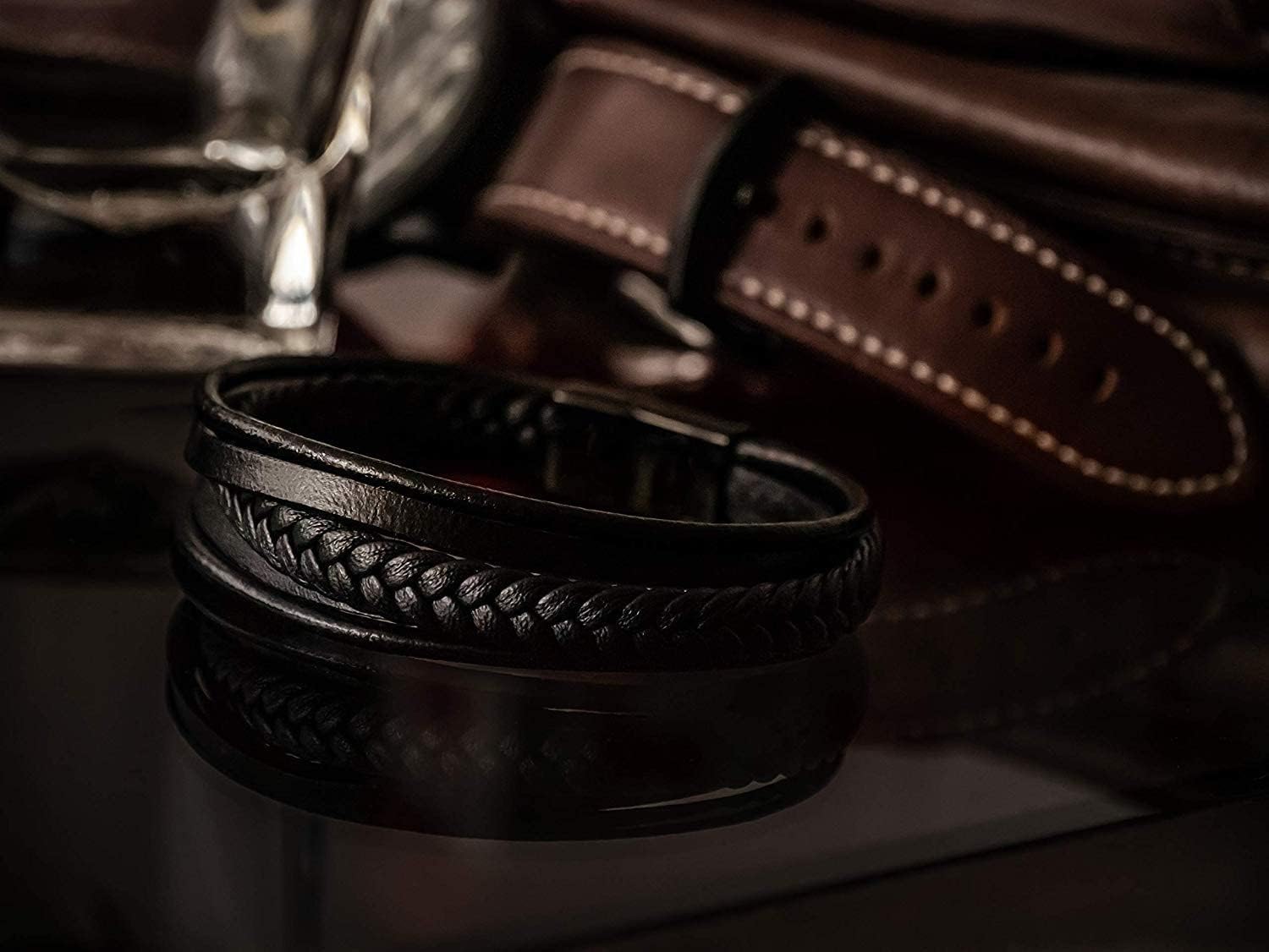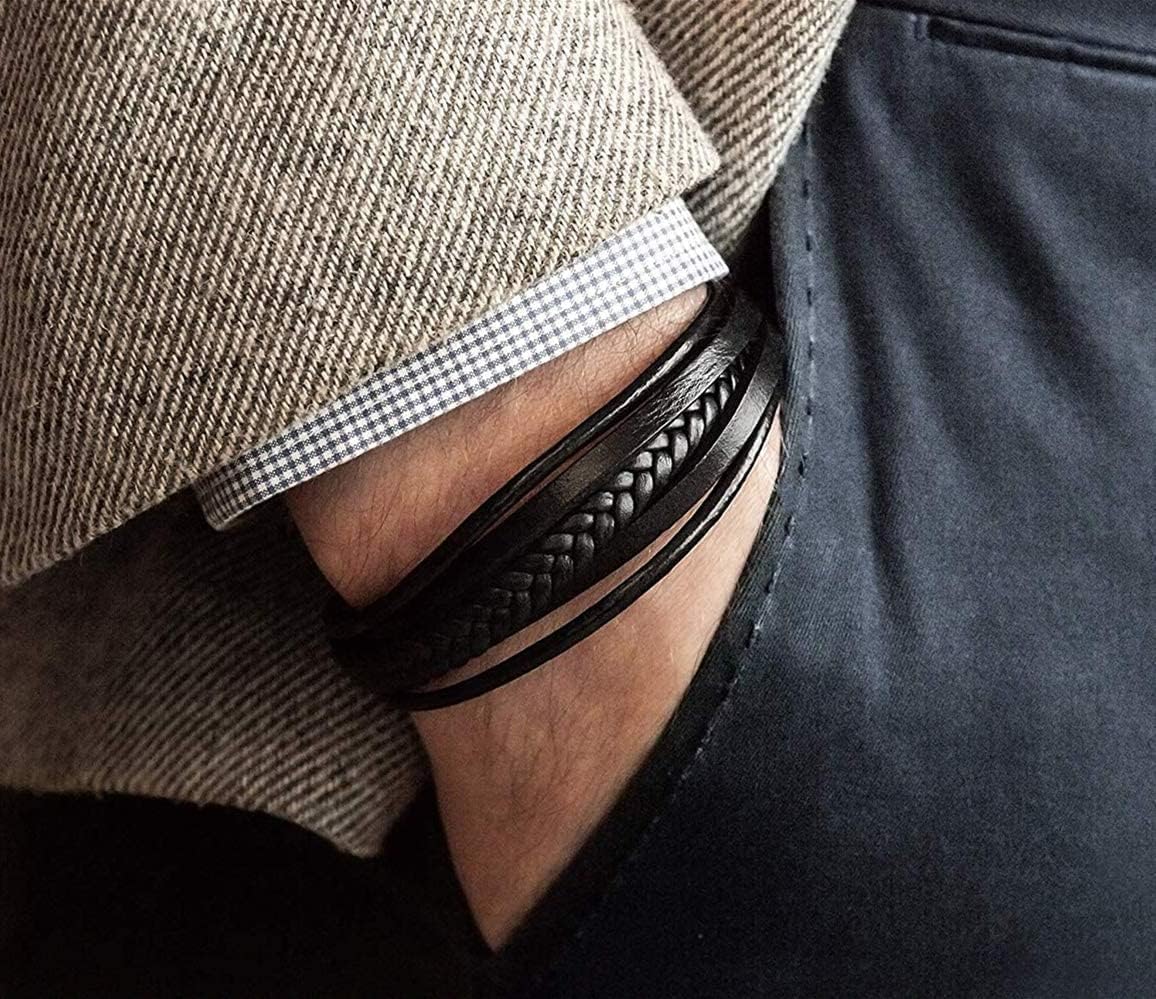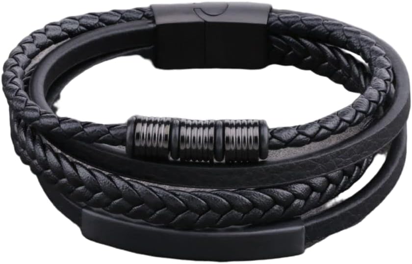 - Material:Braided black leather bracelet,stainless steel silver buckle.The bracelet is a wonderful accessory and looks great for casual and nice outfits.