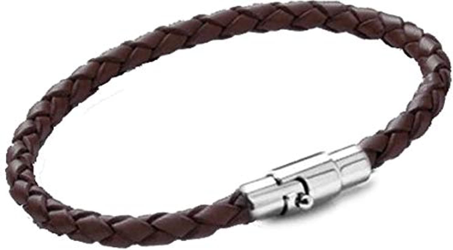Men Brown Woven PU Leather with Stainless Steel Magnetic Clasp Bracele – BUYO