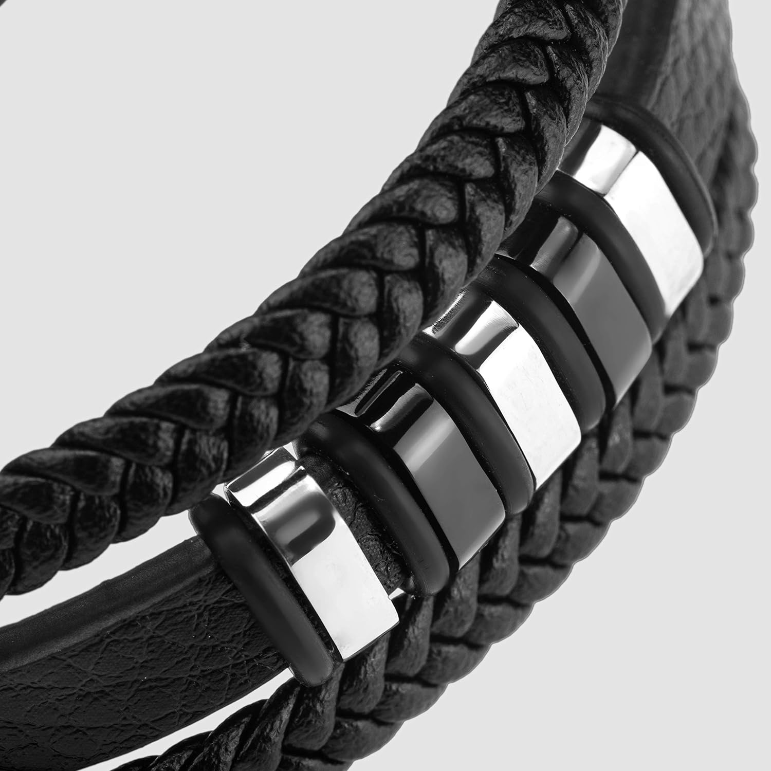 - STYLE - The black leather bracelet is the ideal accessory to complete any outfit. Its eye-catching, elegant design with the braided leather makes it suitable for any occasion and definitely attracts attention