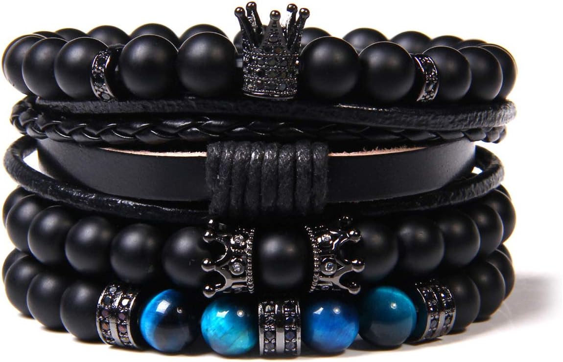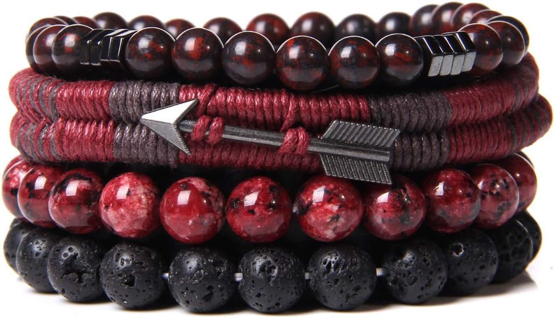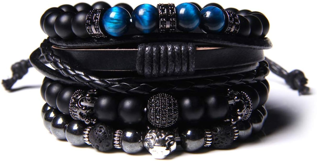 WAINIS Braided Leather Bracelets for Men Women Wrap Tiger Eye Lava Rock Beads Bracelet Woven Ethnic Tribal Rope Wristbands Bracelets Set Adjustable