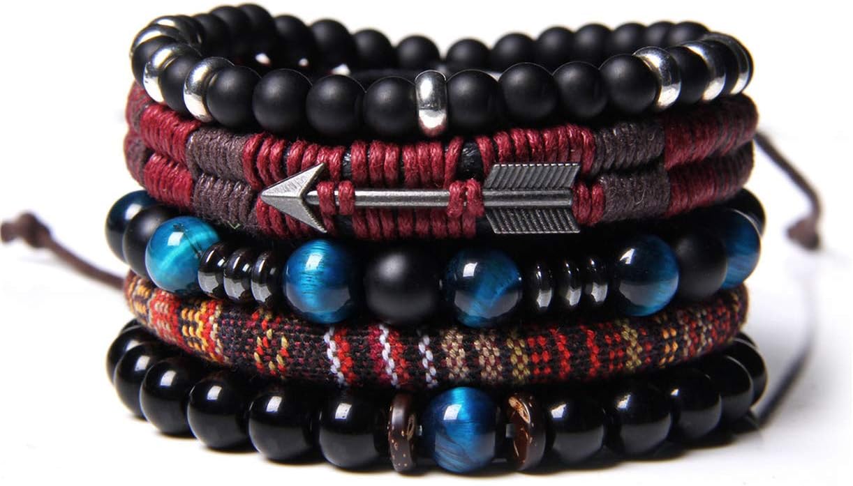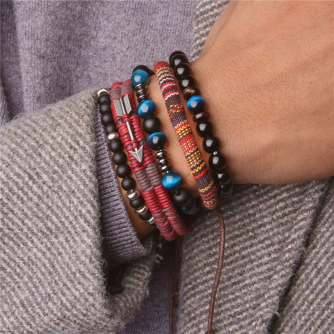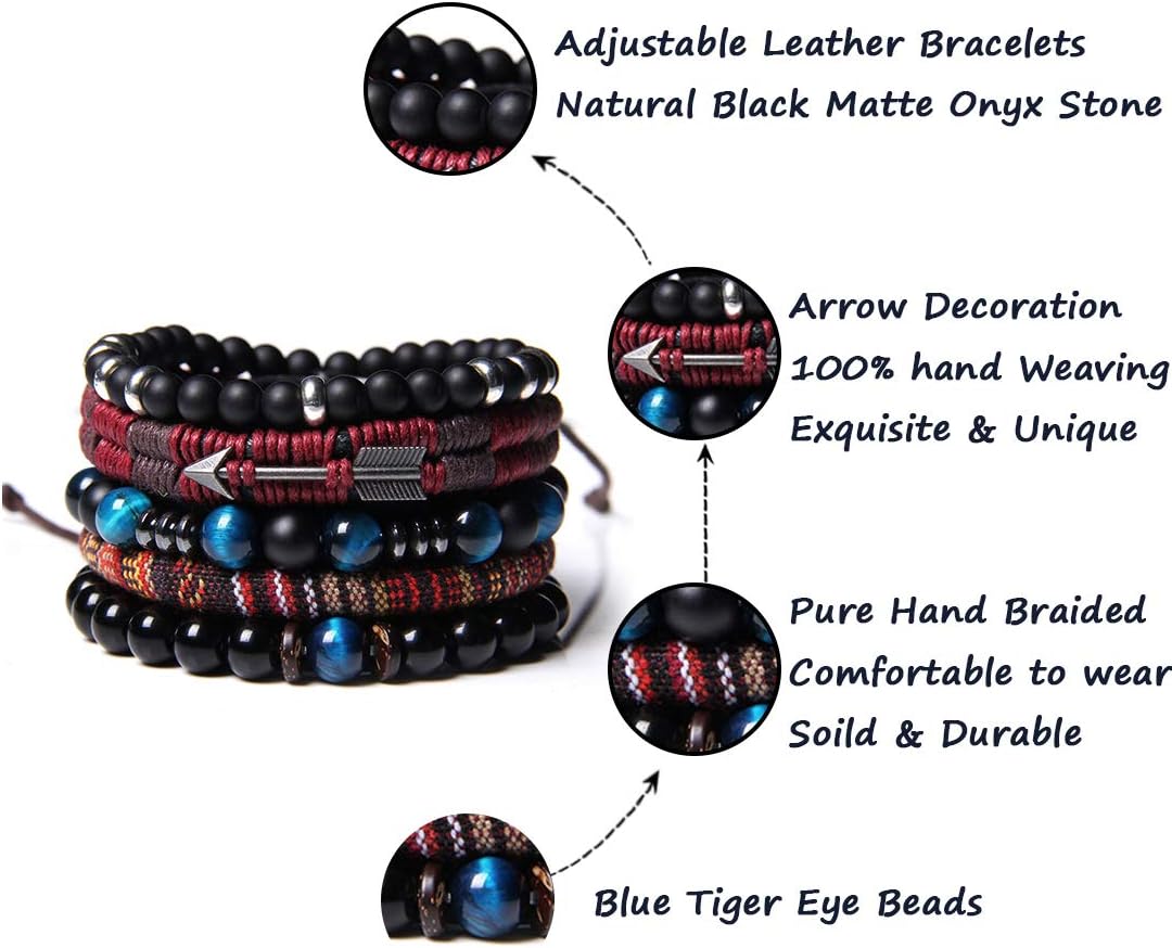 - TRIBAL LEATHER BRACELETS SET--Classic adjustable bracelets pack, including leather,hemp cords,natural stone beads and Woven Hemp.Different Color and Style can Easy Match Your Everyday Wearing Needs.Economical bracelet set Jewelry for both men and women,Deserve to Buy.
