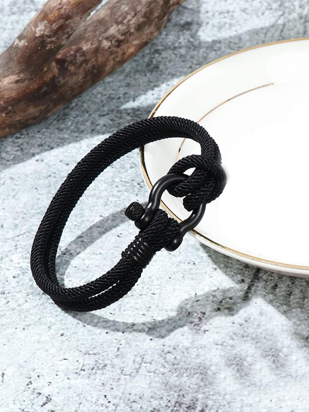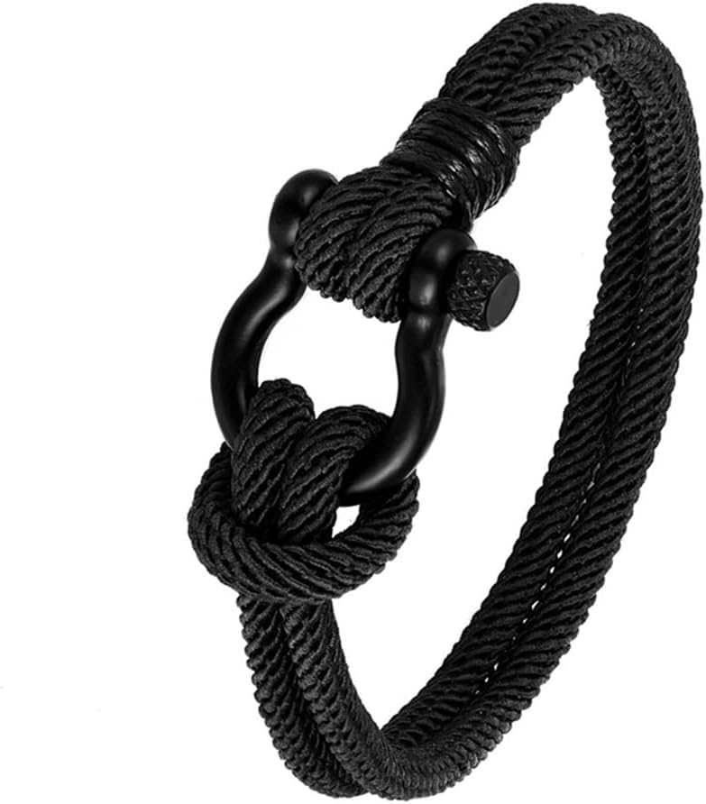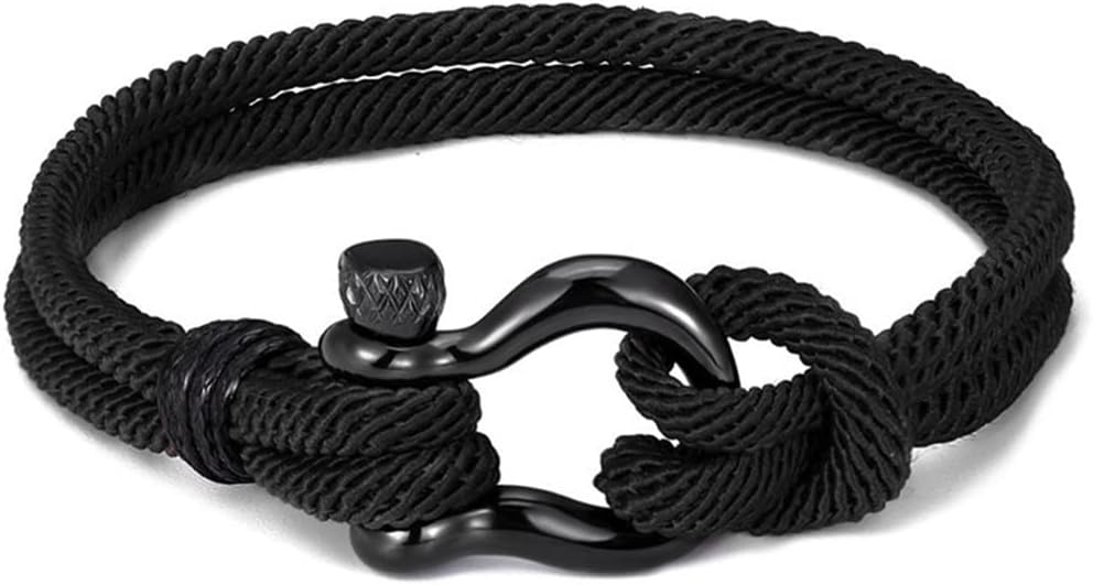 YELLOW CHIMES Rope Bracelet for Mens Black Shackle Handmade Anchor Bra – BUYO