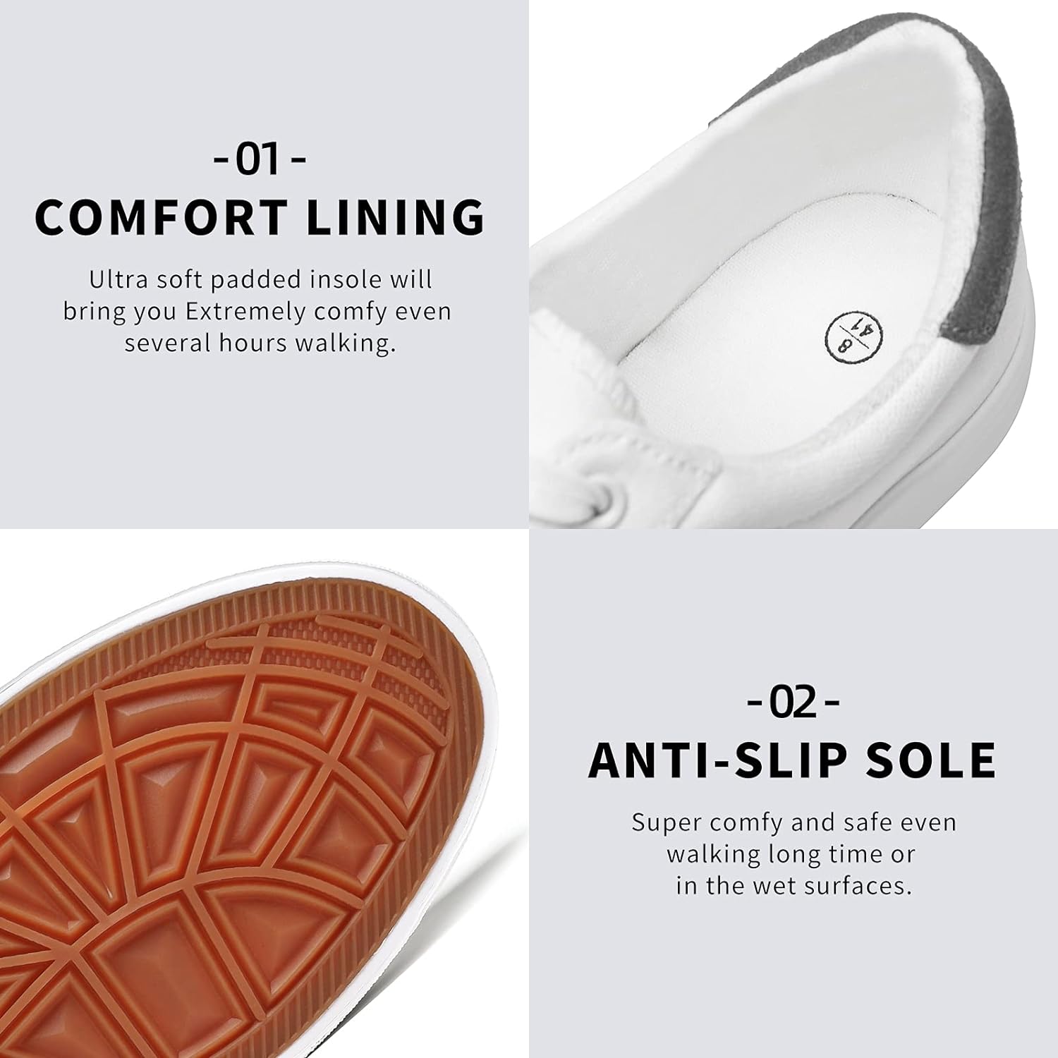 - 【Outstanding protection】FRACORA mens white canvas shoes have a soft and thick design on the heel, Non-marking flexible rubber outsole provides the ultimate no-sliptraction,When you walk, you can feel the comfort and soft support from these canvas sneakers!