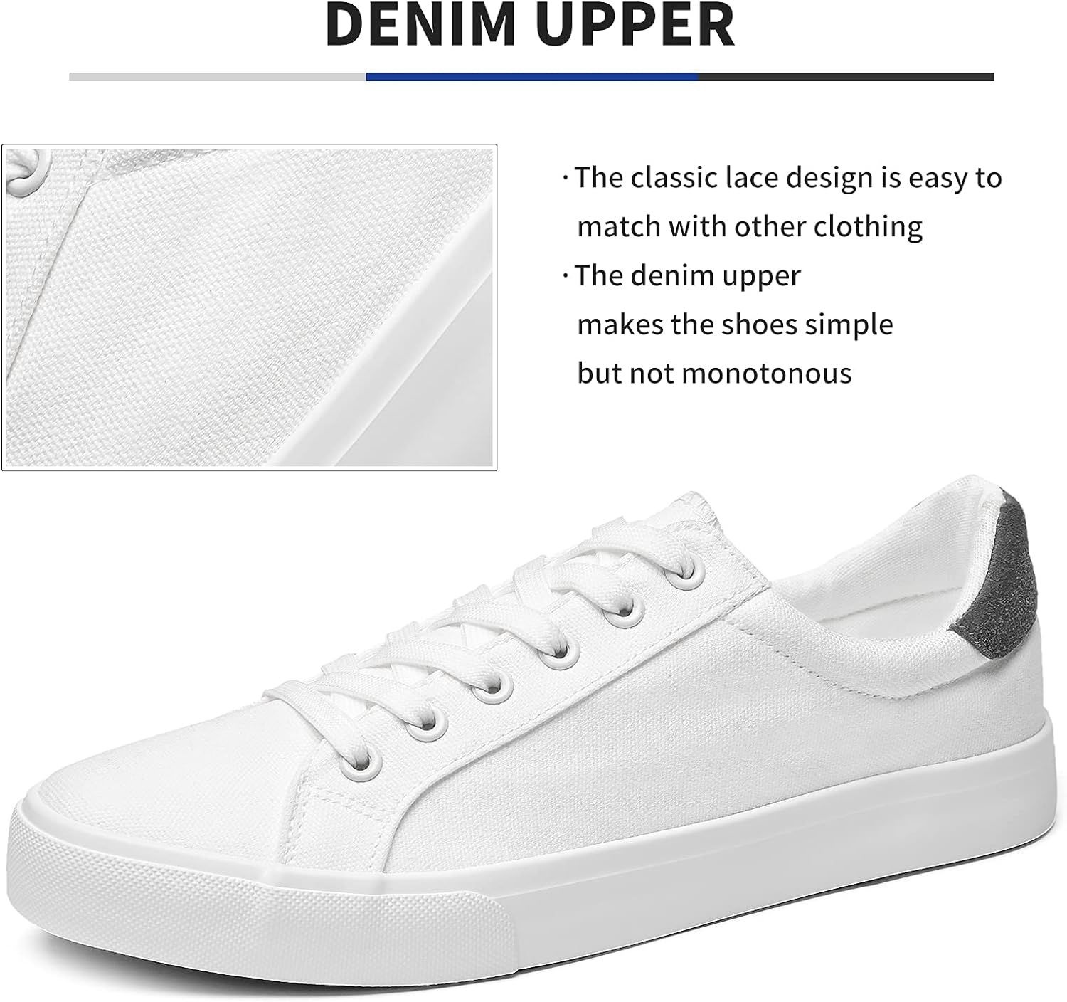 - 【Denim Upper】Mens canvas shoes design for casual wear,combined with classic outstanding appearance,stylish denim color bring new stylish feeling with these canvas sneakers!