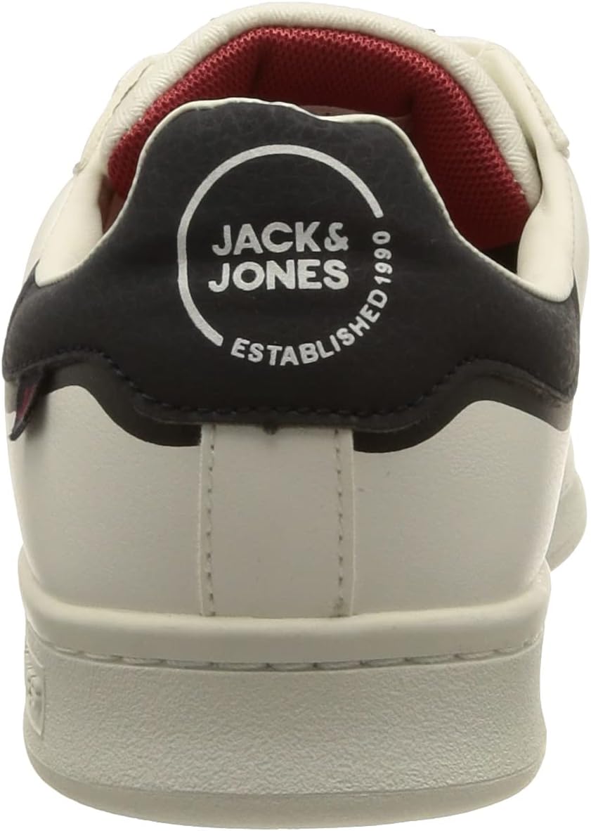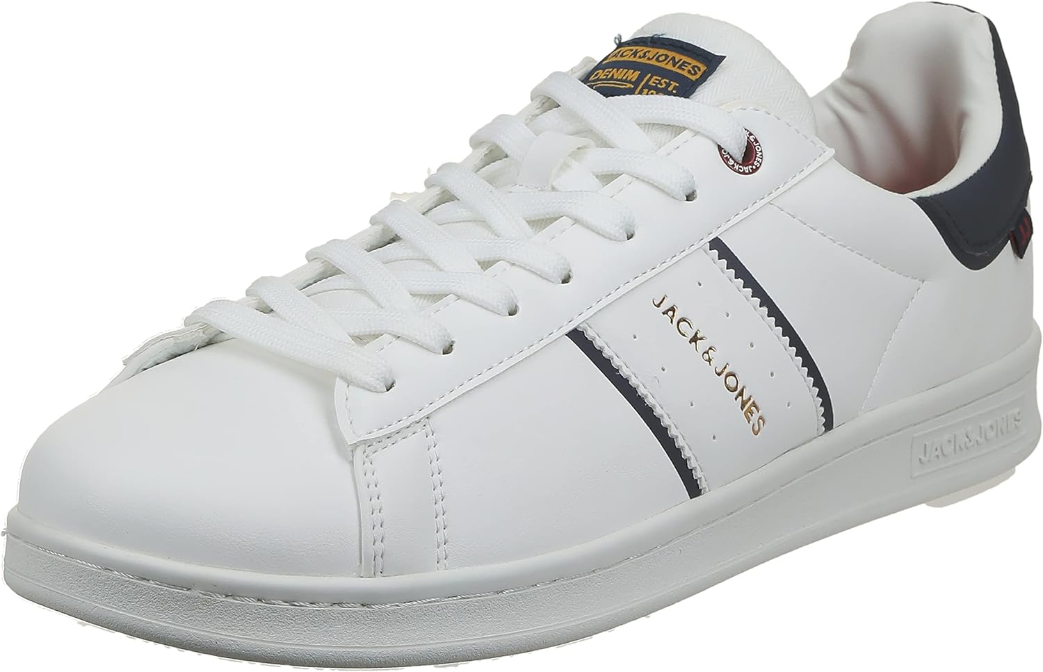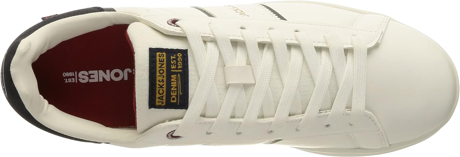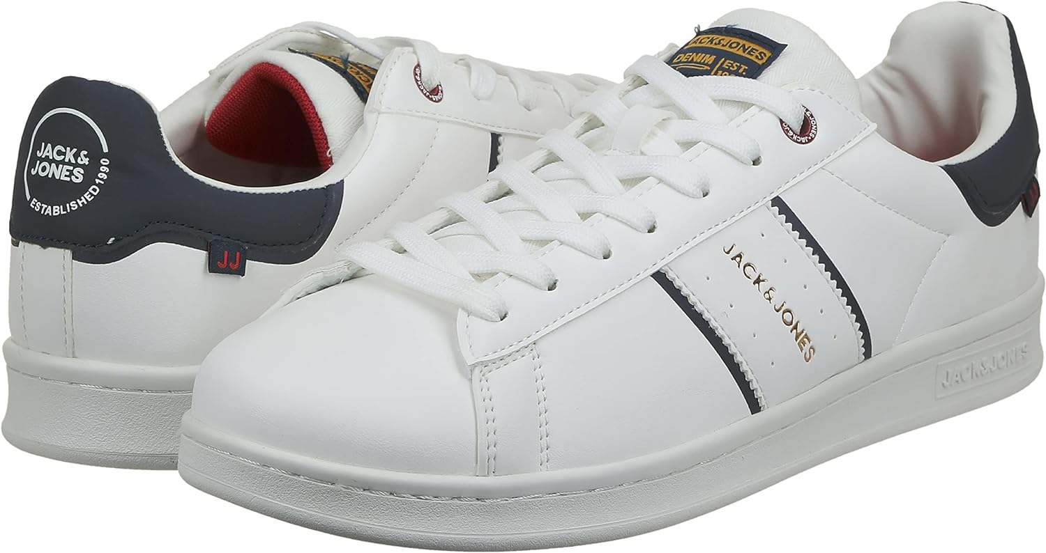 White colour blocked sneakers by jack and jones with lace-up closure and logo print detailing.