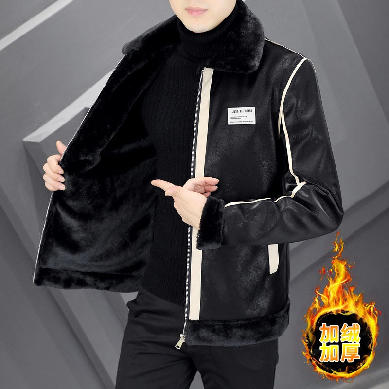 Coat Men's Warm With Velvet Thickened Suede Leather Coat Cotton-padded Coat Fur Integrated