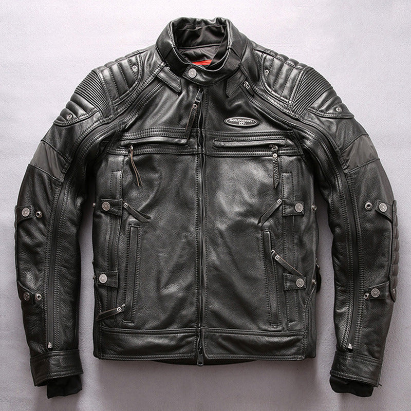 Men's Genuine Leather Stand Collar Slim Motorcycle Suit – BUYO
