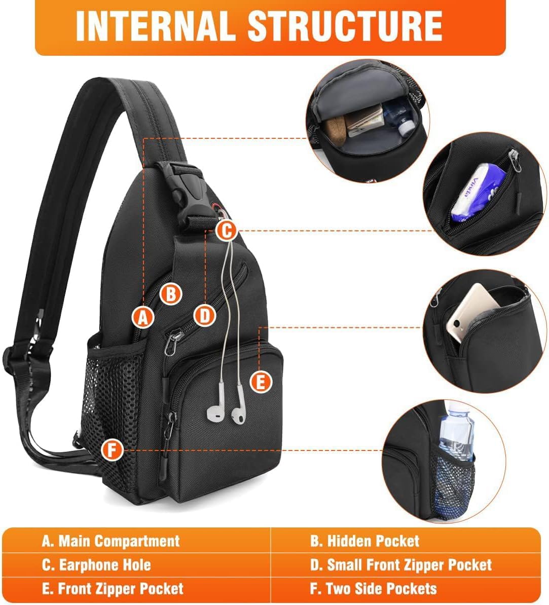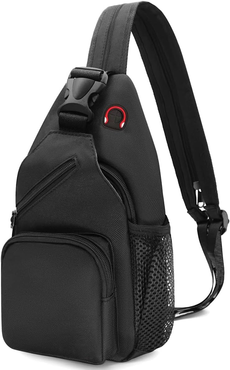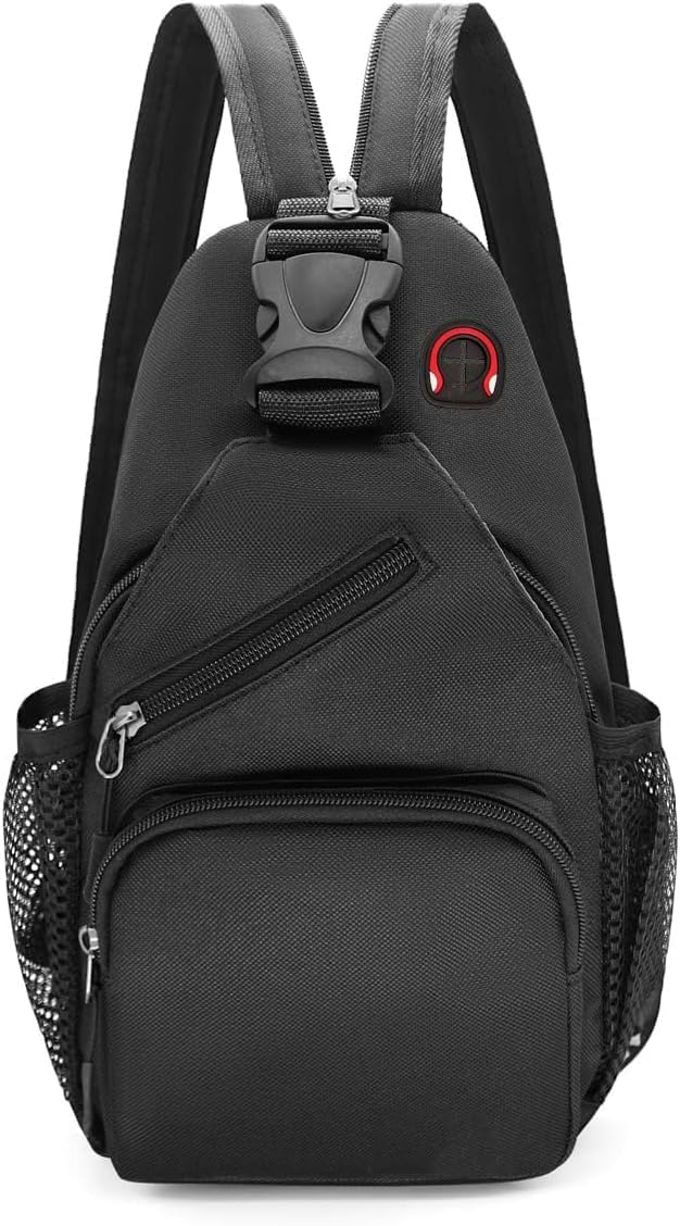 Crossbody Sling Backpack, Azonee Men and Women Sling Bag Shoulder Backpack Travel Hiking Chest Bag Daypack Travel Chest Pocket with Headphone Hole, Black