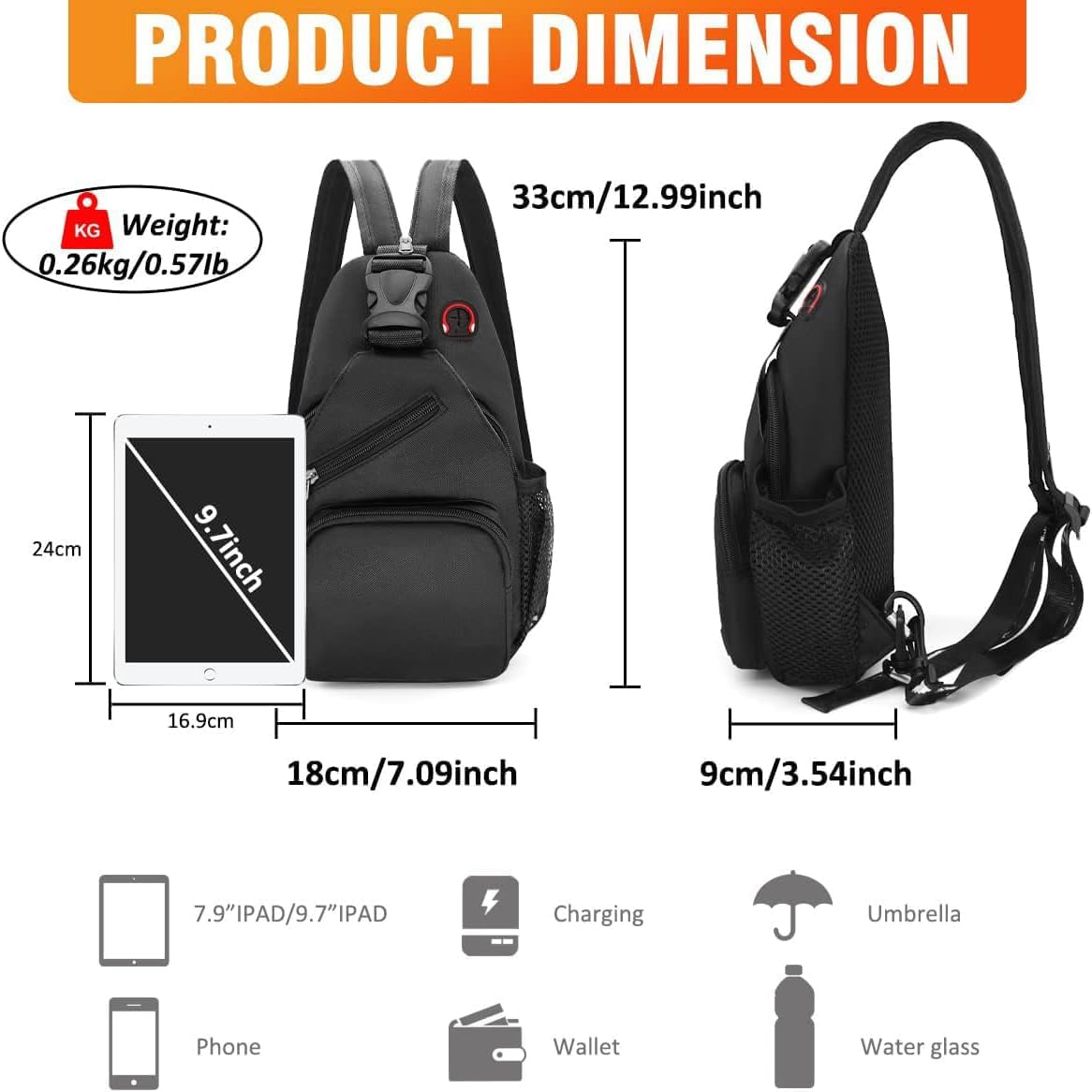 - 🌸[ Organized and Lightweight ] With dimensions of 7.09 x 3.54 x 12.99 inches and weighing only 0.26kg, our shoulder bag offers incredible durability without the added bulk. It features six compartments, including small zippered pockets for cosmetics, keys, and essentials. The zippered main pockets and buckles provide secure storage for iPad mini, mobile phone, power strip, and more. Plus, there's a 5.3-inch high side mesh pocket for your water bottle.