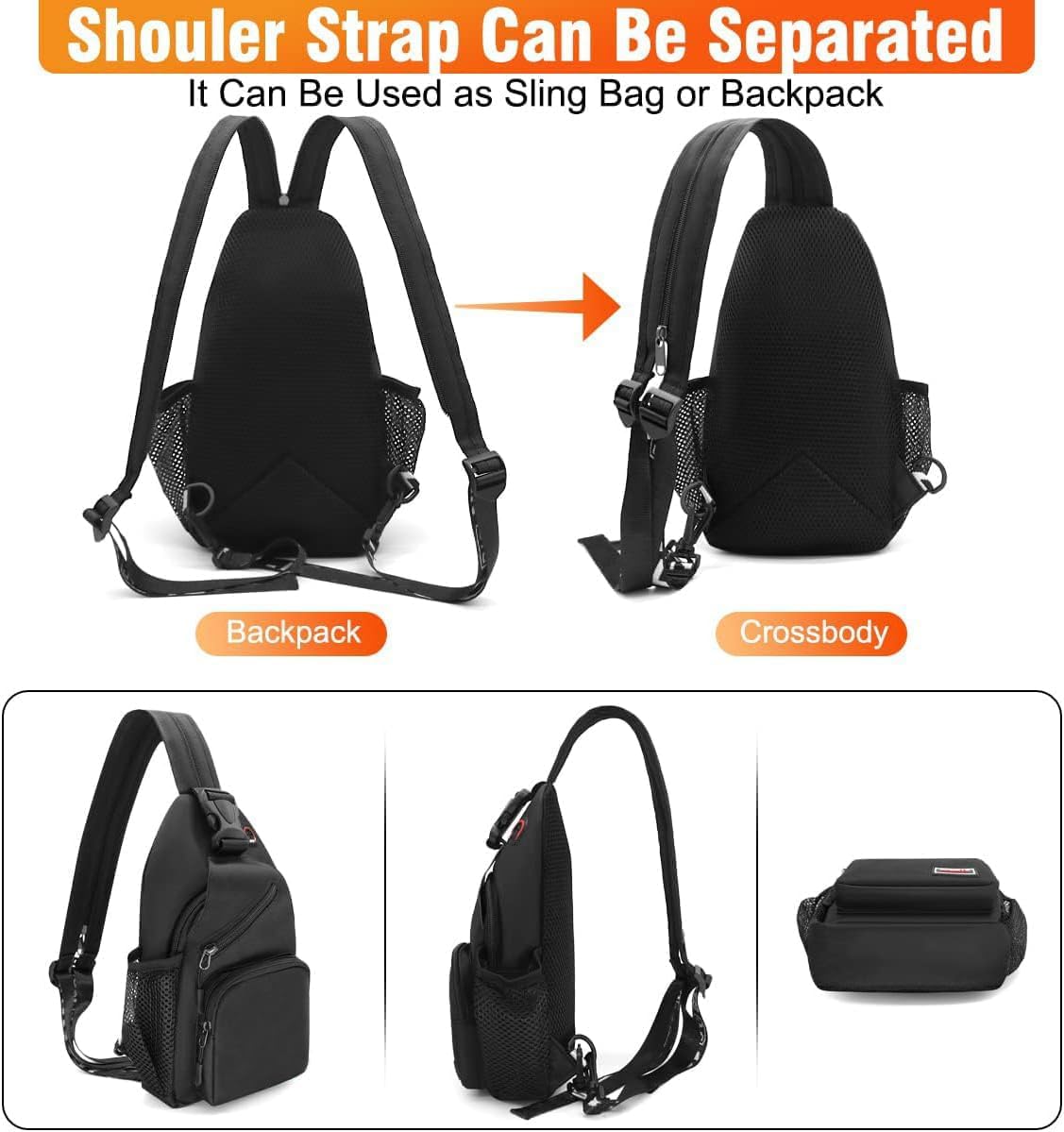 - 🌸[ Unique and Versatile Design ] Elevate your style with our innovative Sling Backpack! Its zipper strap design allows you to transform it into a chest pocket, backpack, crossbody bag, or shoulder bag, making it the perfect companion for various outdoor activities like cycling, walking, hiking, and more.