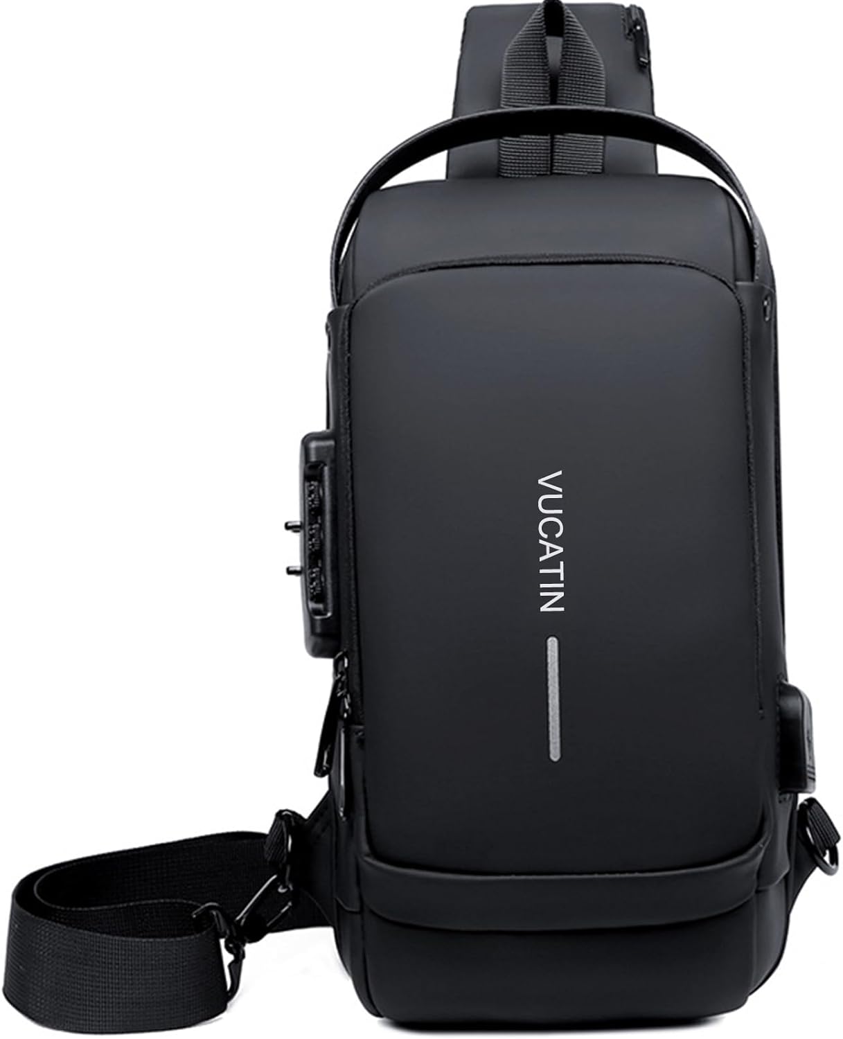 Crossbody Sling Bag, VUCATIN Body Chest Shoulder Bag for Men Women Casual Shoulder Backpack Bag, Waterproof Leather Chest Casual Daypack with Usb Charging Port for Travel Hiking
