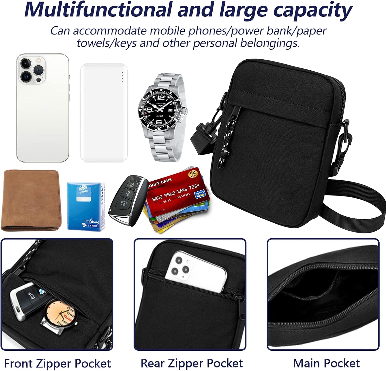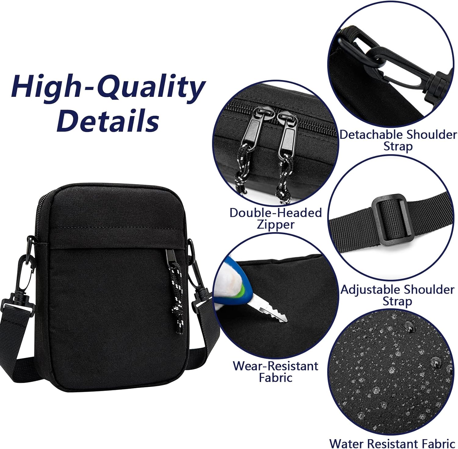 - Premium Quality: 4 layer mini crossbody bag equipped with quality zipper, smooth to use and durable for long time daily using. Selected 900D oxford fabric, making the satchel bag lightweight and also water-resistant, mush have for a travel.