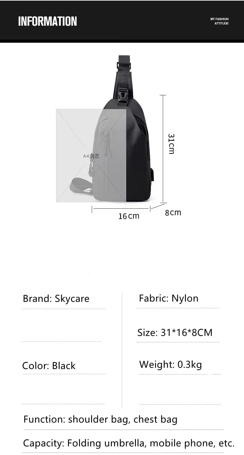 Skycare Sling Crossbody Bag Small Shoulder Backpack for Men Waterproof Slim Chest Bags Casual Daypack for Travel Cycling