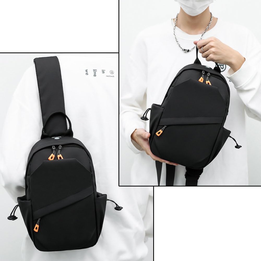 Sling Crossbody Backpack Bag for Men, Waterproof Lightweight One Strap Sling Bag with External USB Hole Design, Men's Adjustable Sling Shoulder Chest Bag for Travel Cycling Sports and Outdoor, Black