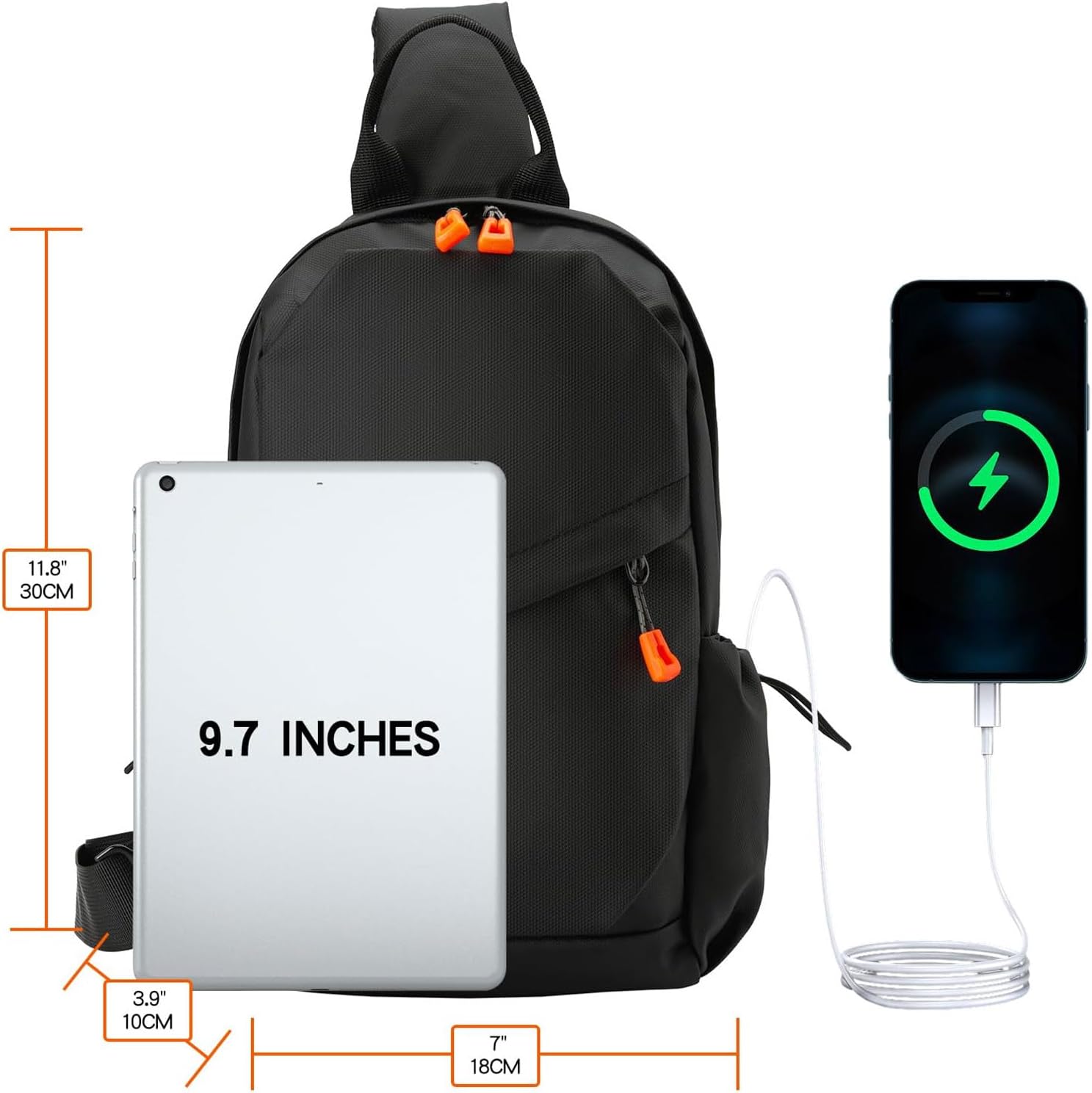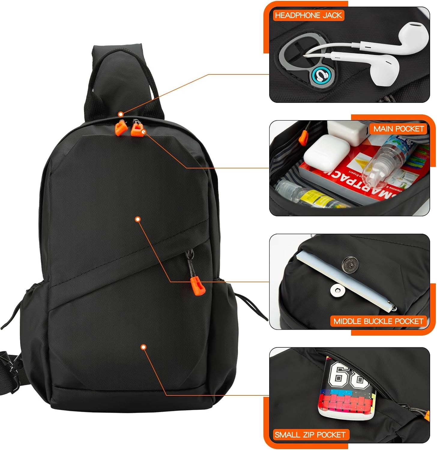 - 🚴【Large Capacity】🎒Our unisex sling bag has: Front: 1*zip main pocket, 1* middle buckle pocket, 1*small zip pocket; Back: 1* anti-theft zip pocket. Side: two side pockets. sling bag has enough room for all your essentials such as school books, mini ipad, phone, umbrella, sport equipment etc. in addition, a inter layer insert pocket inside the main pocket holds the battery for the charging port-perfect for daily used