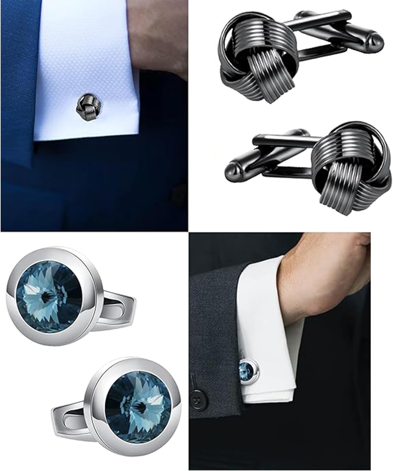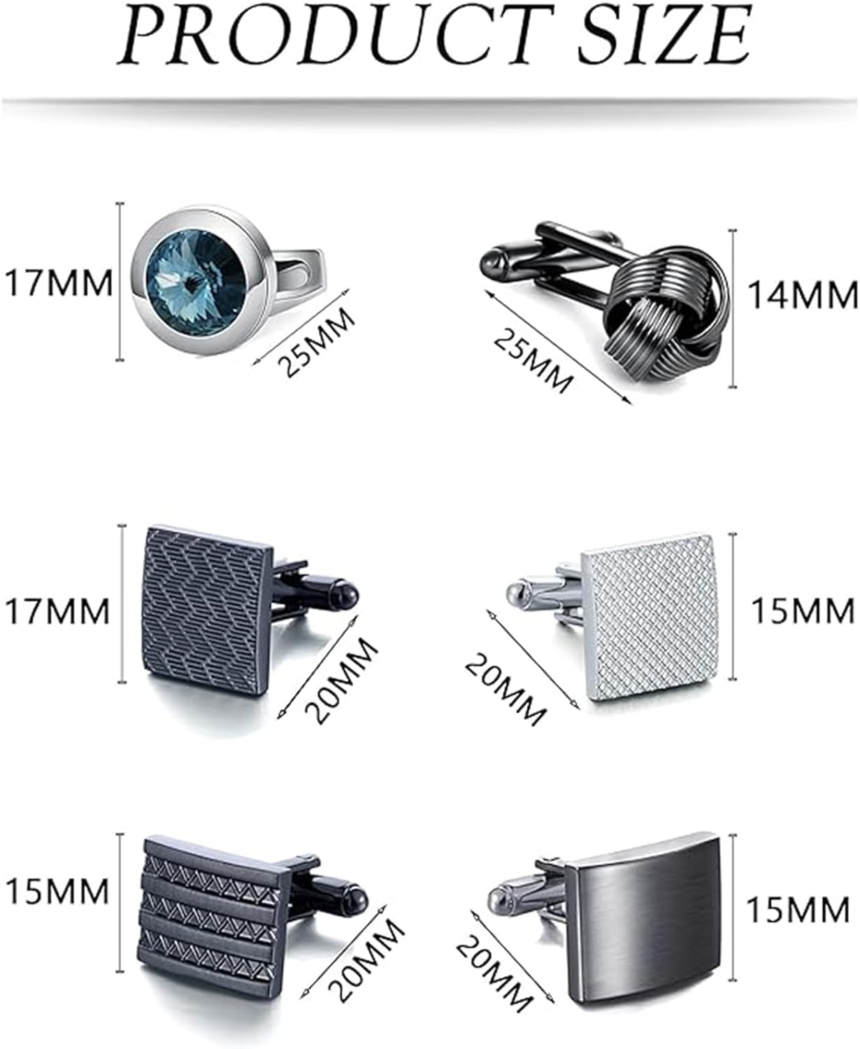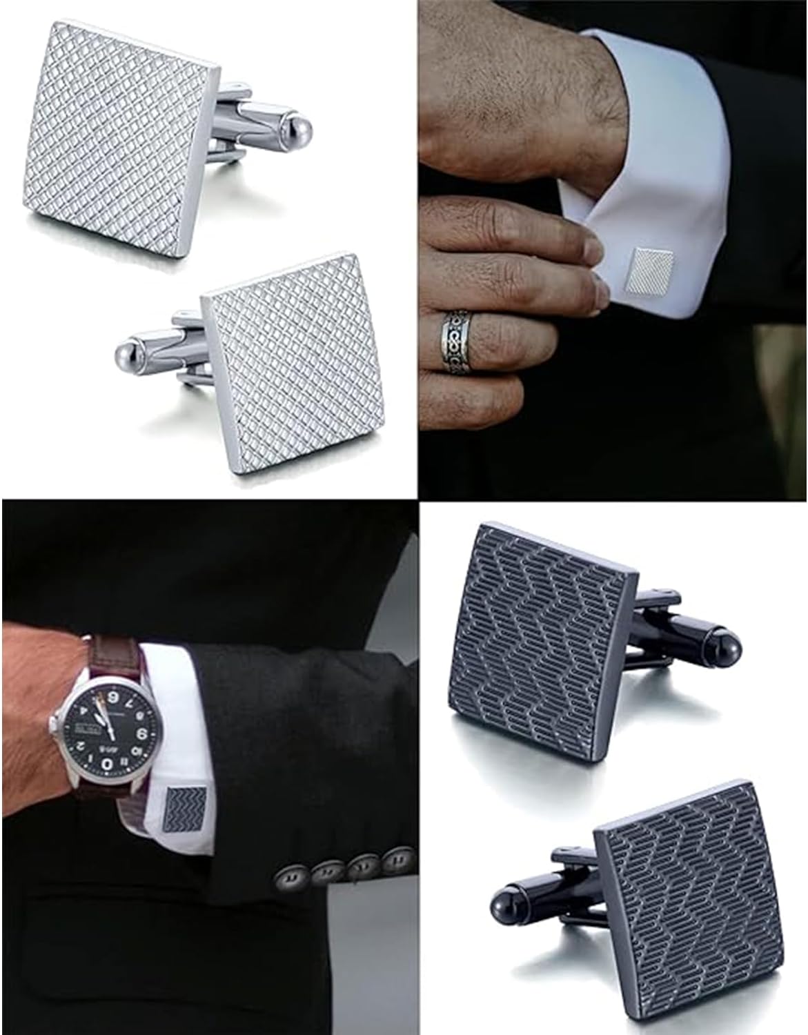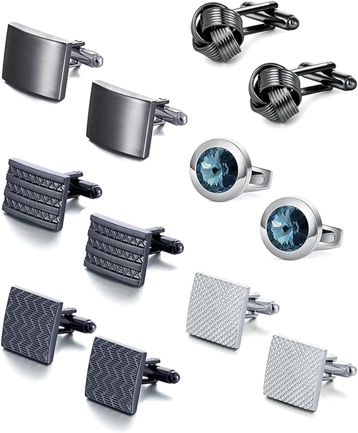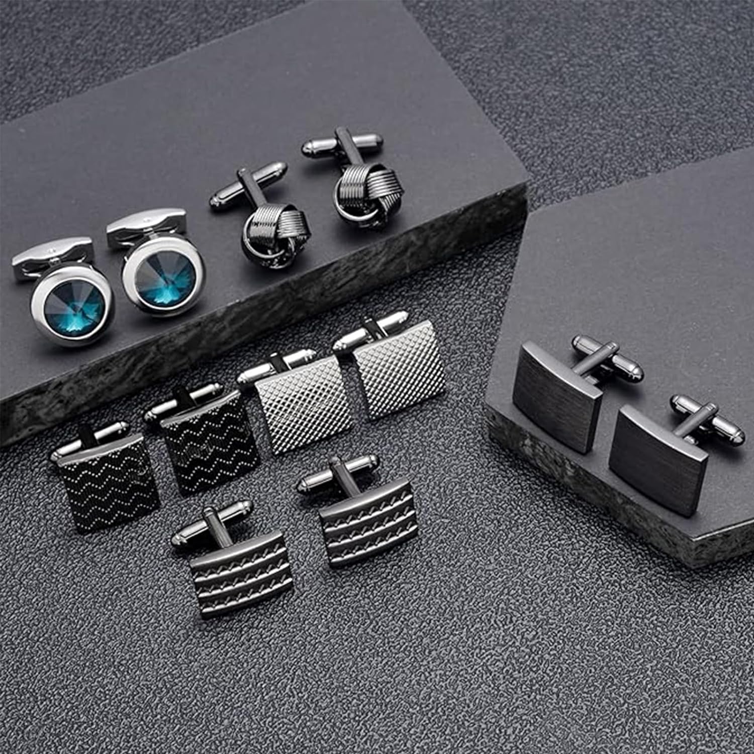- Sophisticated Cufflinks Collection: Elevate your formal or business look with this set of 6 pairs of men's cufflinks, showcasing square, round, knot, and carbon fiber designs. Each pair exudes a serene elegance and refined charm to complement your attire.