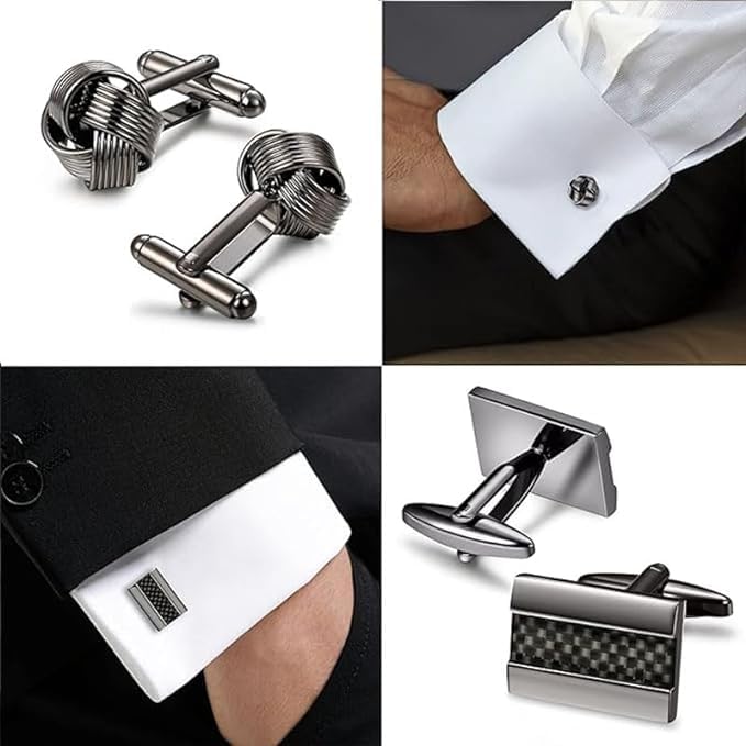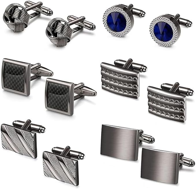 - 【Classic Cufflinks Set】6 Pairs Shirt Suit Cufflinks Including Square Cufflinks, Round Cufflinks, Knot Cufflink, Carbon Fiber Cufflink. Give You a Calm, Elegant And Handsome Looking, Suit For Men's Bussines Or Formal Everyday Wear.