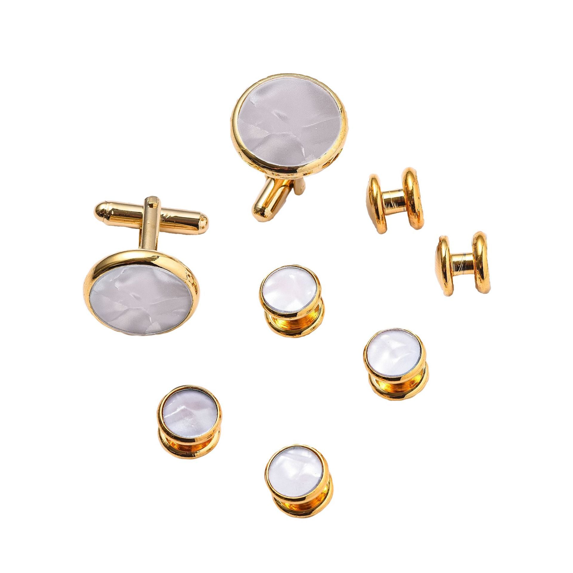 Men's Cufflinks French Shirt Round Drip Shell Cufflinks Cufflink Combo 8 Piece Set