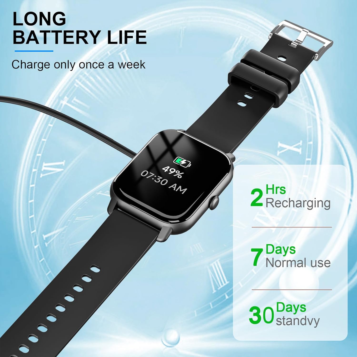 🔋30-Day Long Standby Time - Smart watch for men women has a built-in large capacity battery, which can be fully charged in 2 hours, The fitness watch lasts about 7-10 days of daily use and can reach up to 30 days of standby time. The Garlo smartwatch is compatible with most Android and iOS phones. You can quickly charge it with the included magnetic charging cable while also setting the brightness, ringer, and wake function on/off.