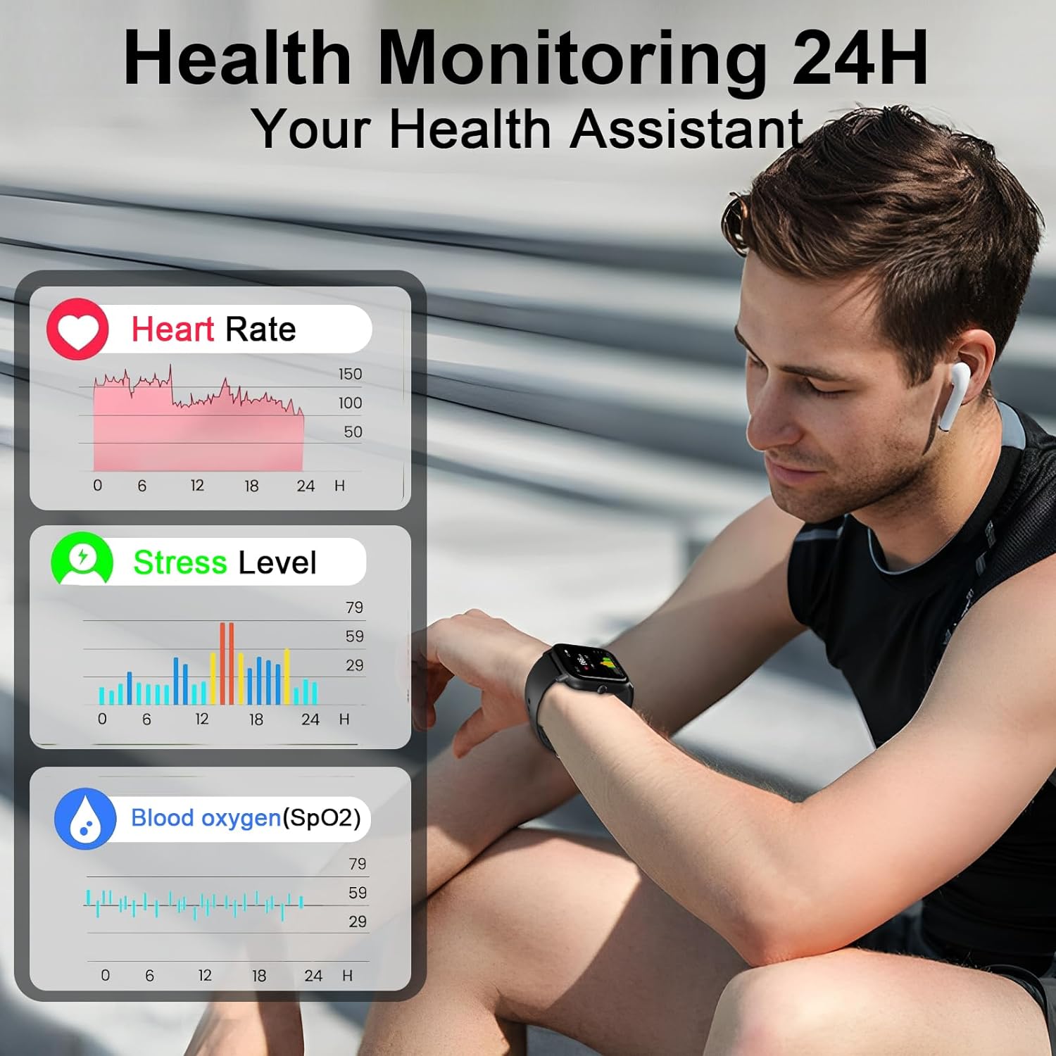Garlo Smart Watch for Men Women, 1.85" Fitness Tracker, Heart Rate/Sle – BUYO