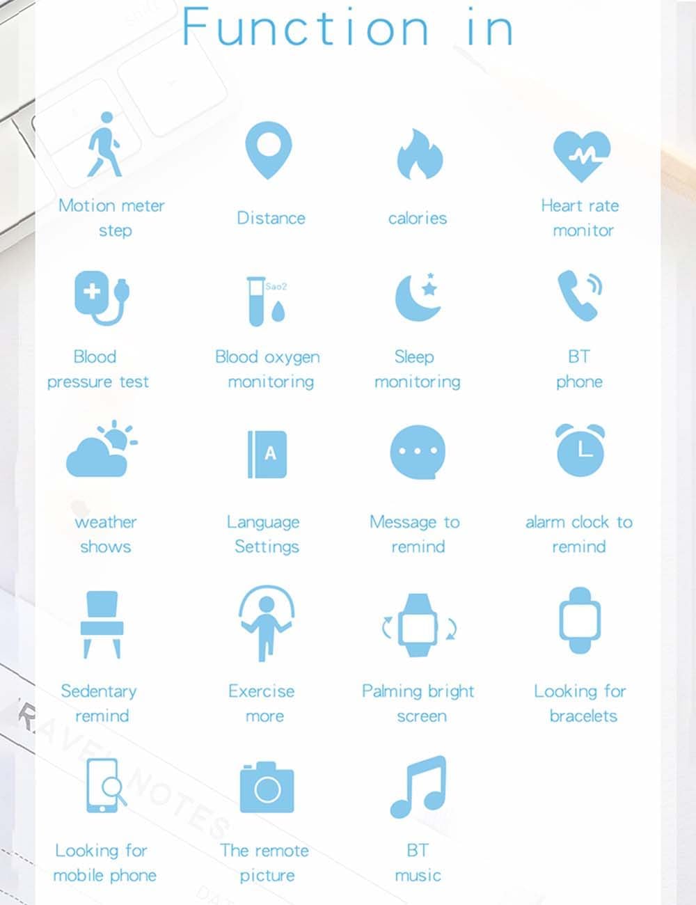 Your Health, At A Glance: It allows you to monitor all-day heart rate and nighttime sleep, and view health data and sleep quality analysis on the app to help you stay aware of your body's condition. You can even measure blood oxygen and blood pressure!