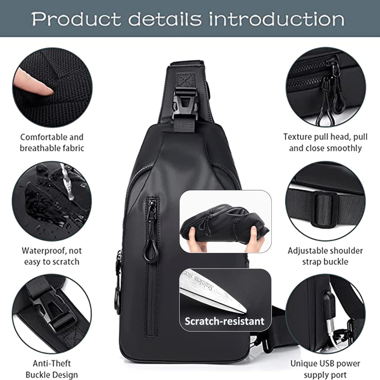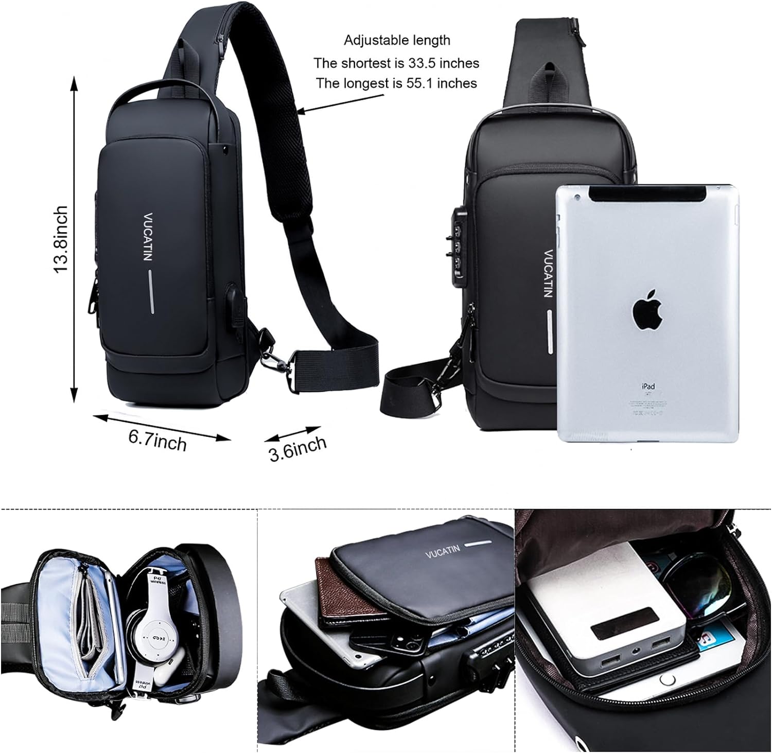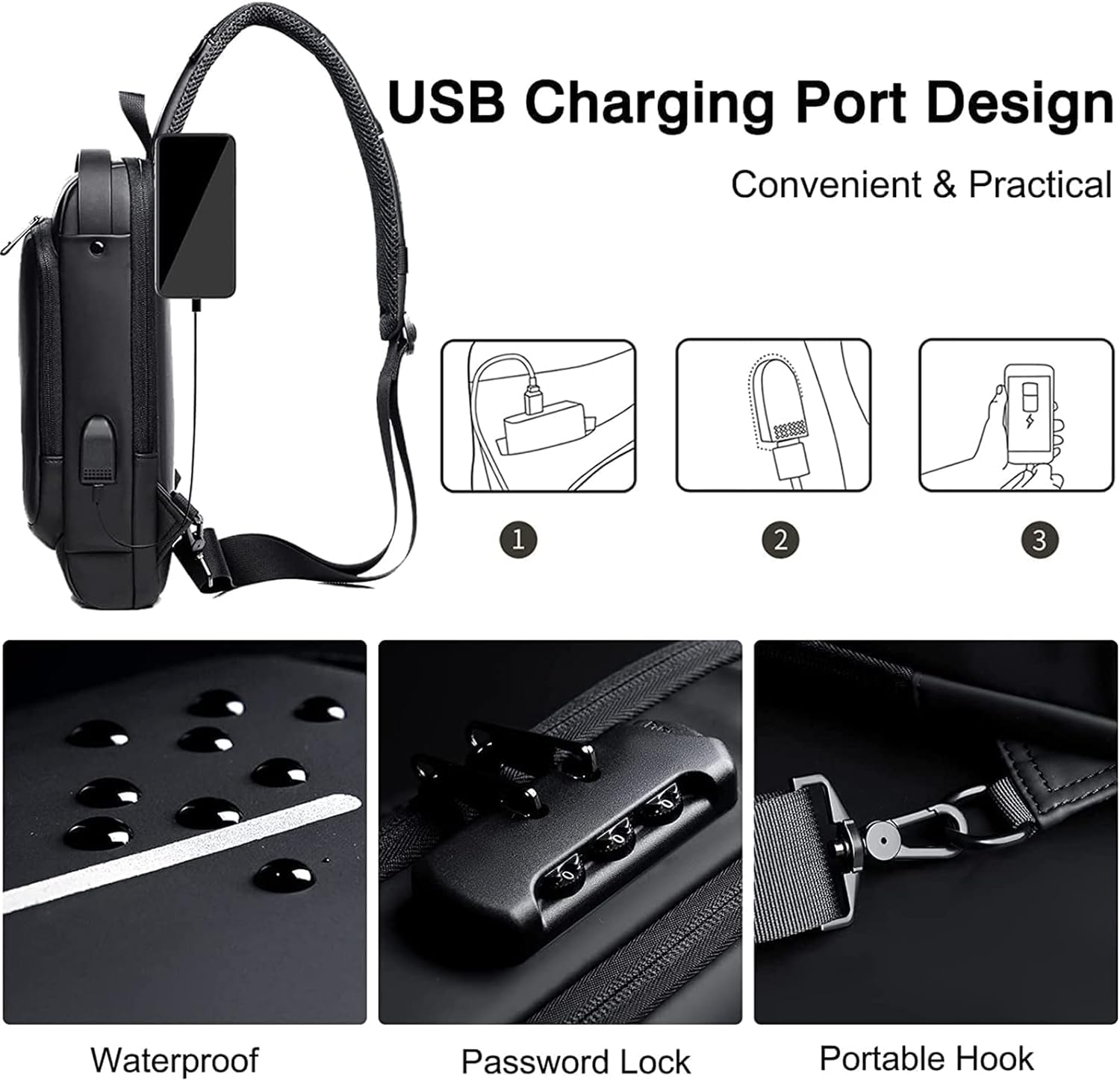 Crossbody Sling Bag, VUCATIN Body Chest Shoulder Bag for Men Women Casual Shoulder Backpack Bag, Waterproof Leather Chest Casual Daypack with Usb Charging Port for Travel Hiking