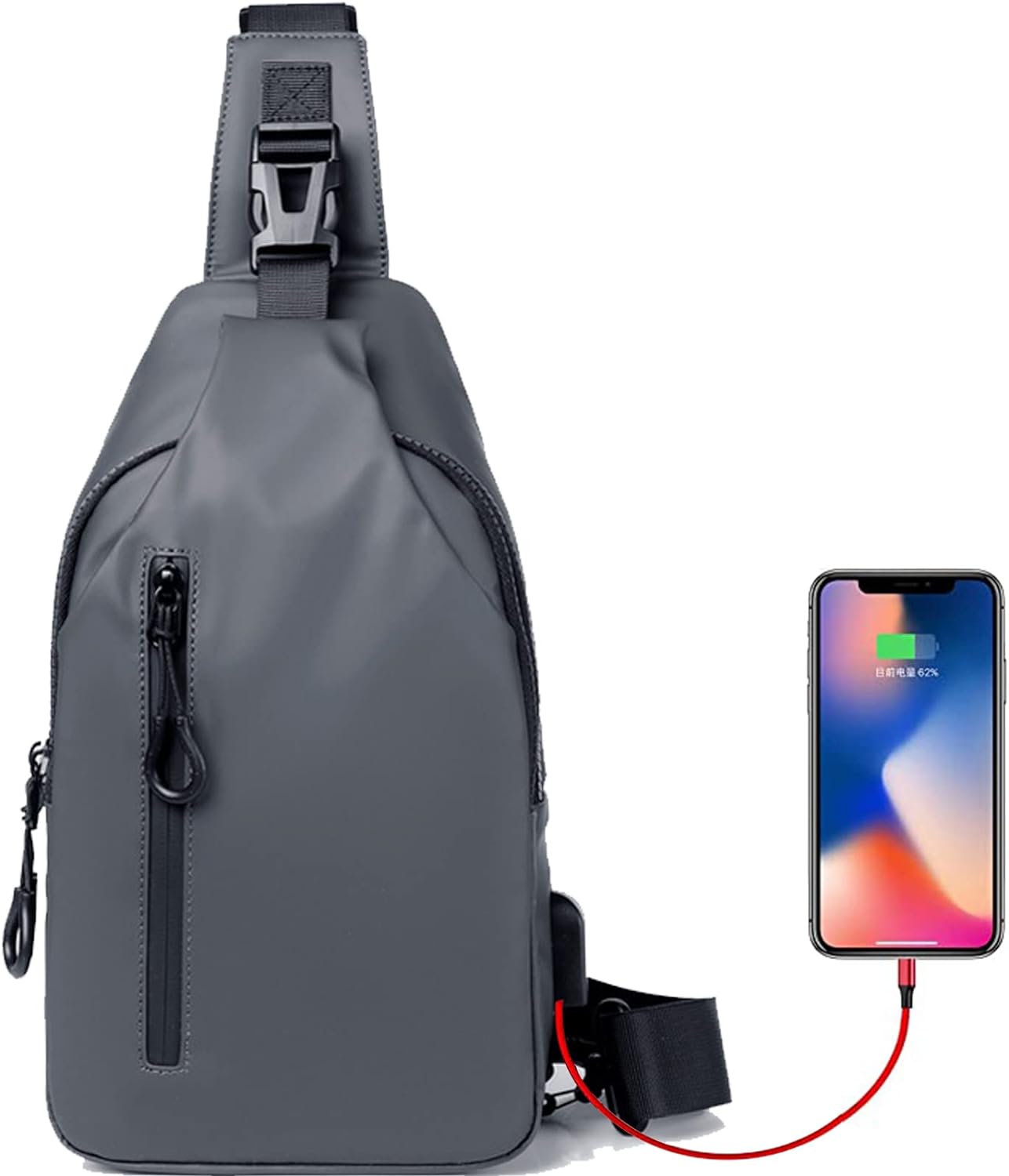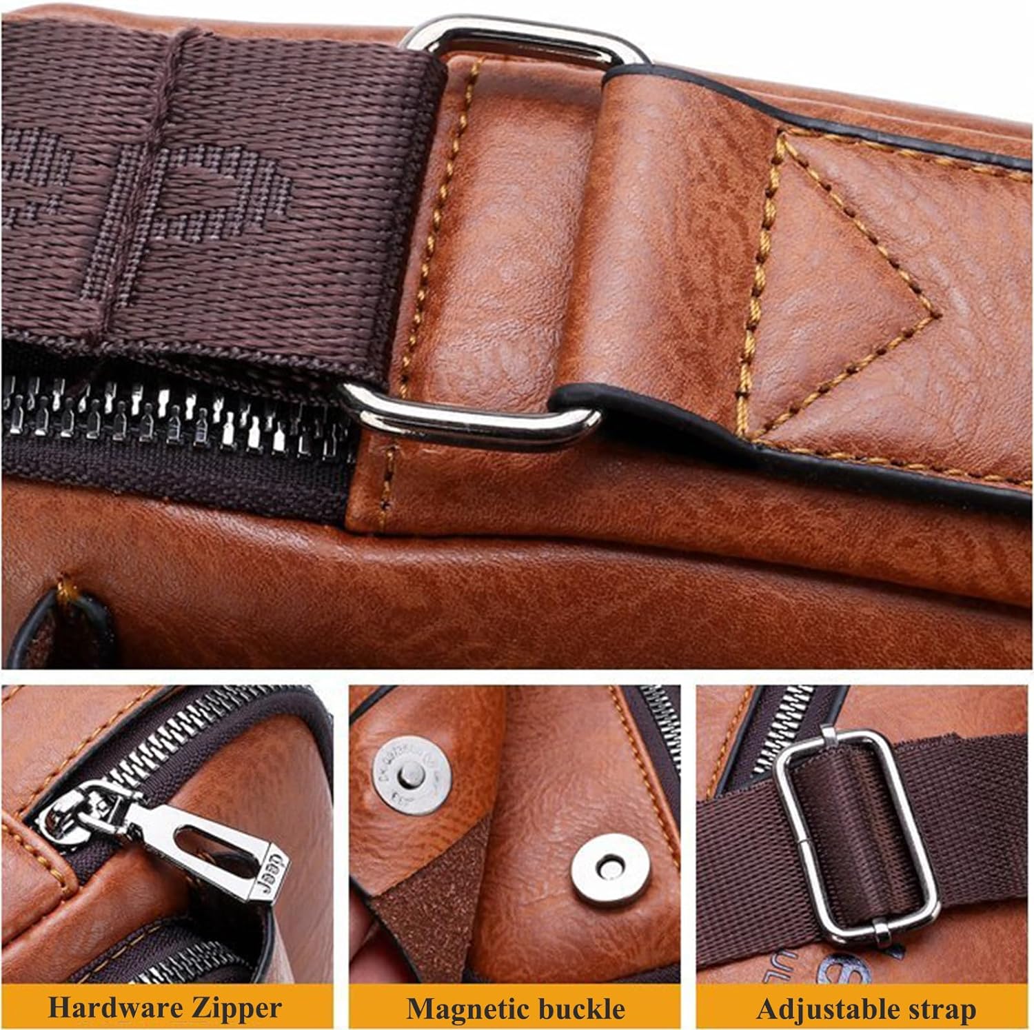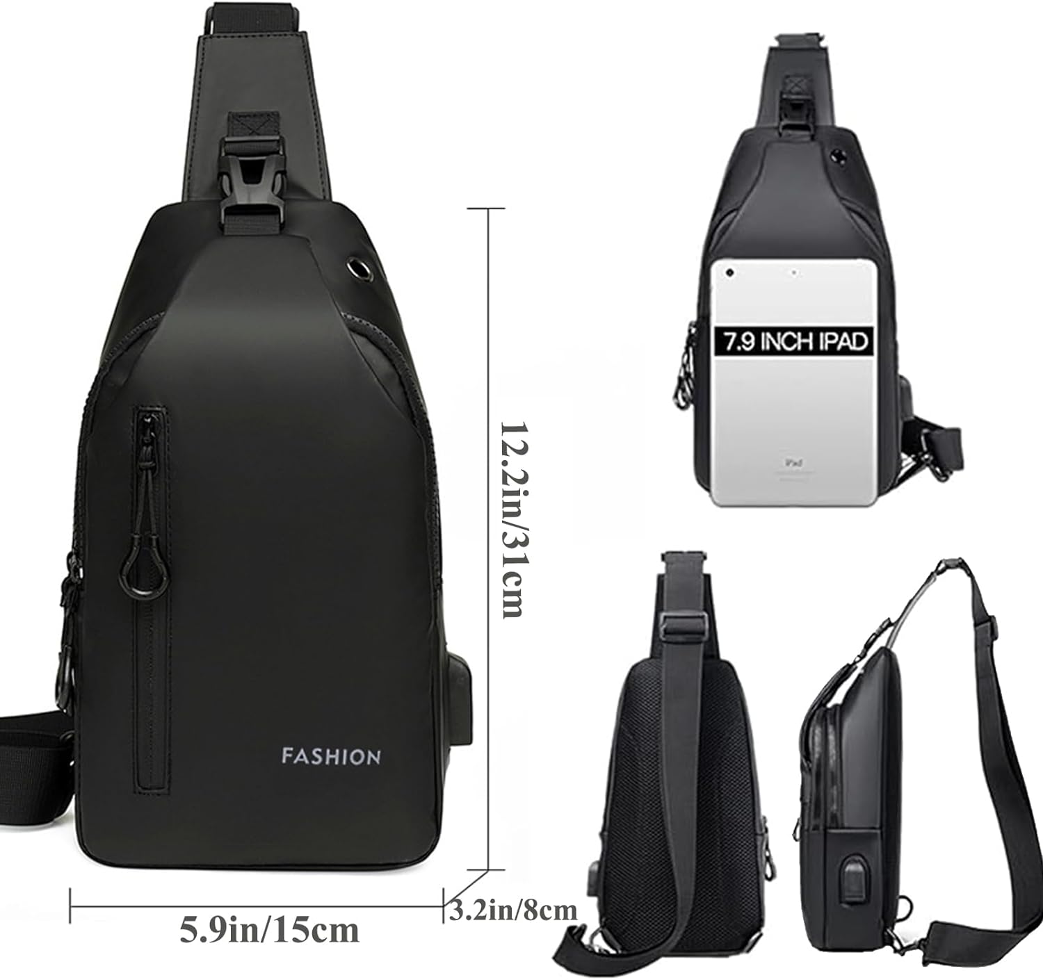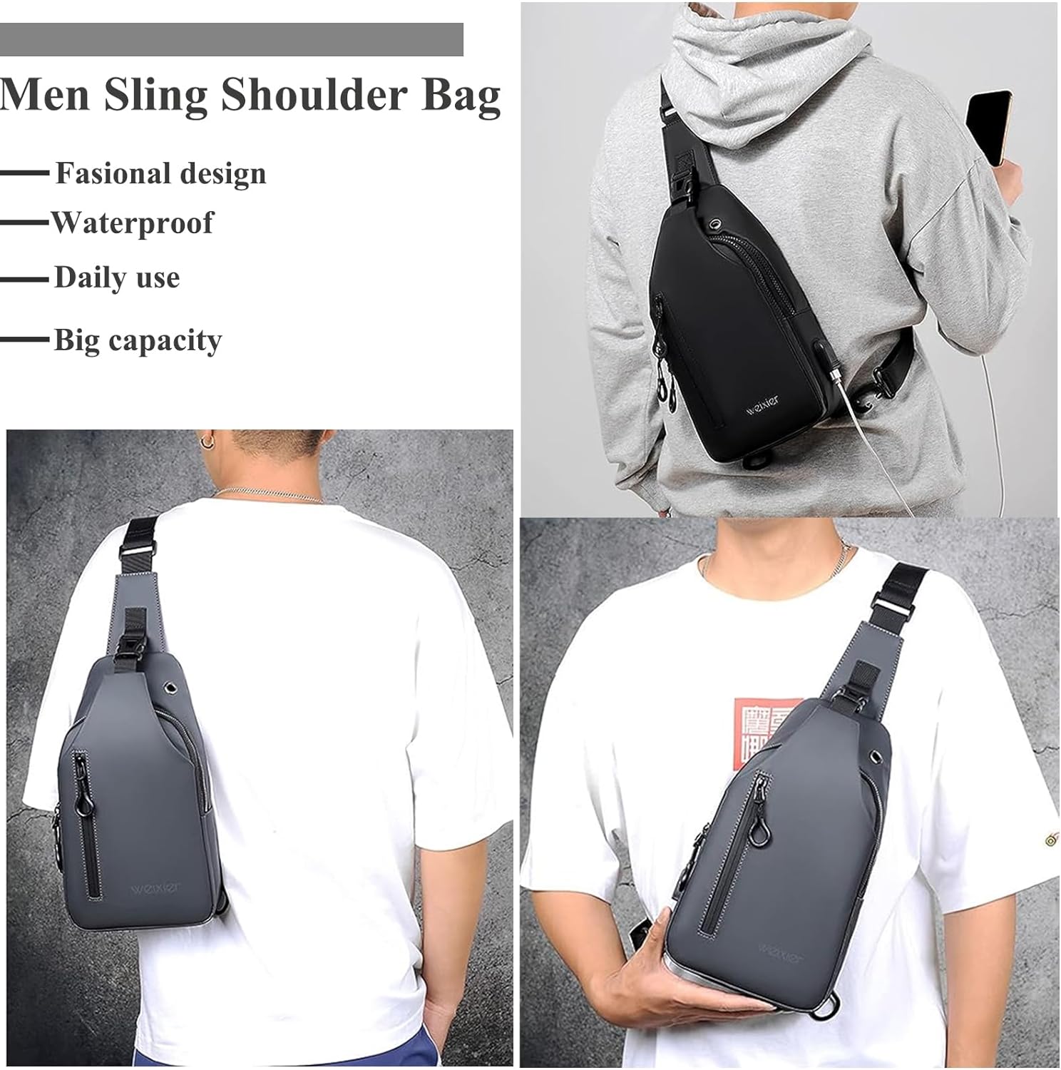 Crossbody Sling Bag, VUCATIN Body Chest Shoulder Bag for Men Women Casual Shoulder Backpack Bag, Waterproof Leather Chest Casual Daypack with Usb Charging Port for Travel Hiking