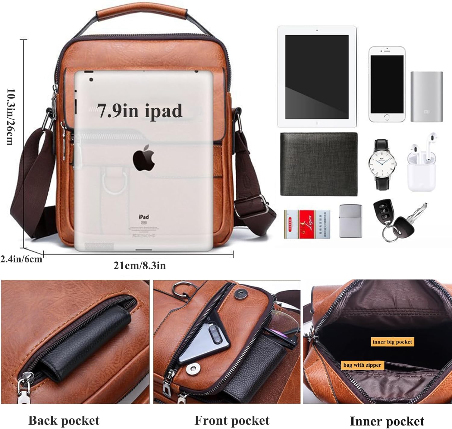 - COLOR - Brown and Black. (Please pay attention that the brown color may have a little color difference. ) SIZE - 32 x 16 x 6CM (empty). FITS 7.9" iPad mini. Weight: 0.4kg. !!Please pay attention that the size of the bag is normal, not that big, which fits 7.9 inch iPad mini well. It's suitable for daily use or travel to keep your phone, charger, power bank, wallet, iPad mini and some small staff organized. Please read the size before purchasing it.