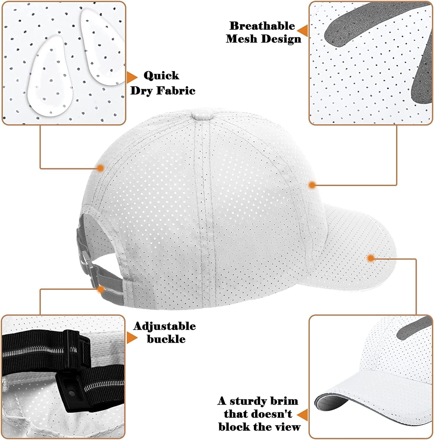 - 🏃♂️Mesh design - The mesh back of the sports hat is designed to enhance breathability and the sweatband keeps the head fresh and dry.