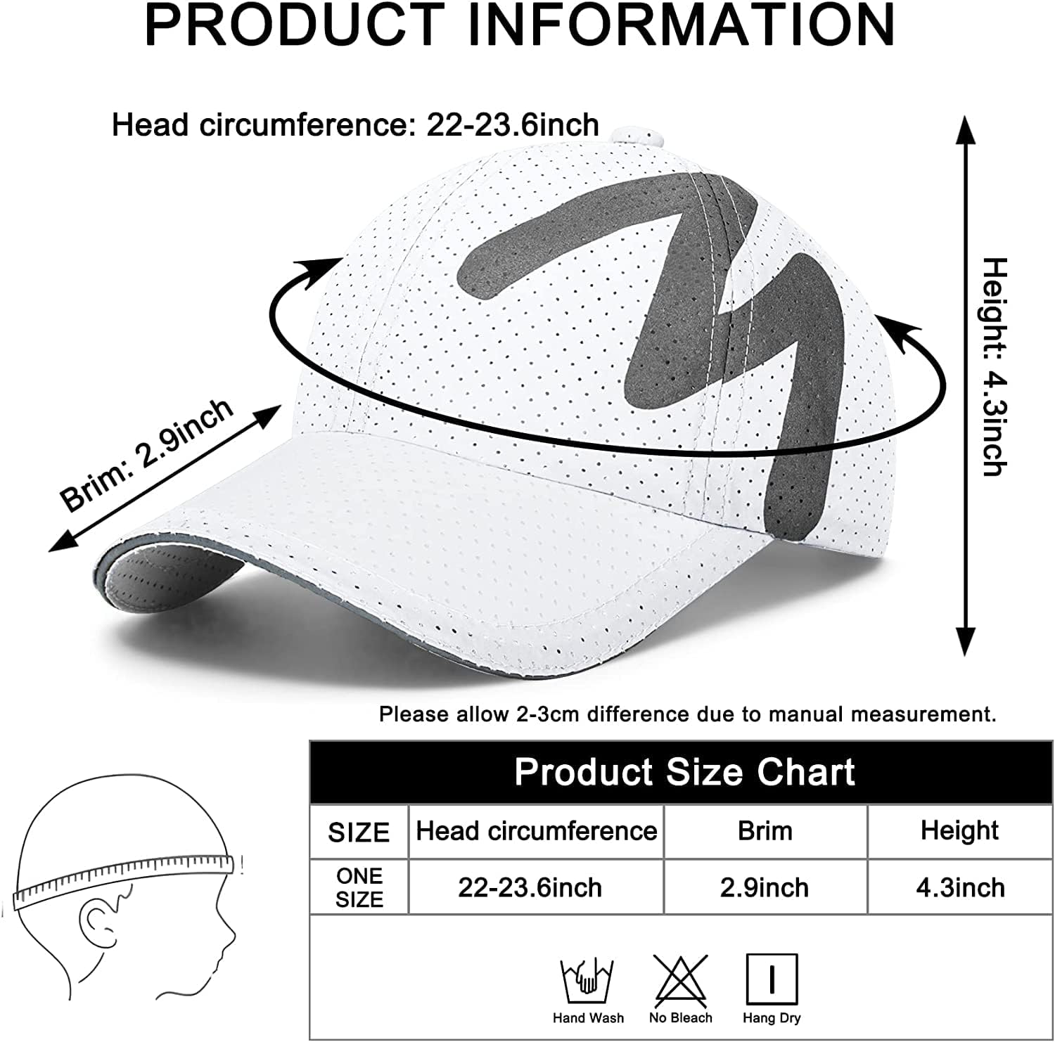 - 🏃♂️Adjustable size - The head circumference of the running cap is 56-60cm and the brim length is 7.5cm. The elastic adjustable strap can be adjusted to fit your comfortable size.