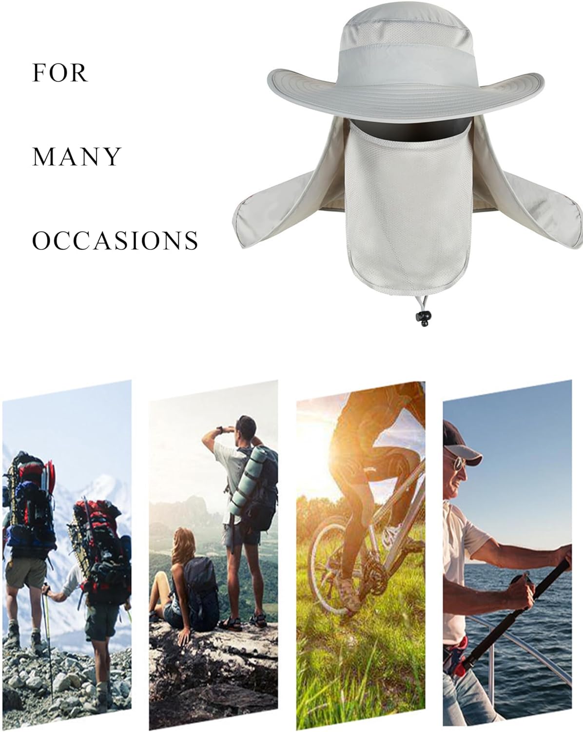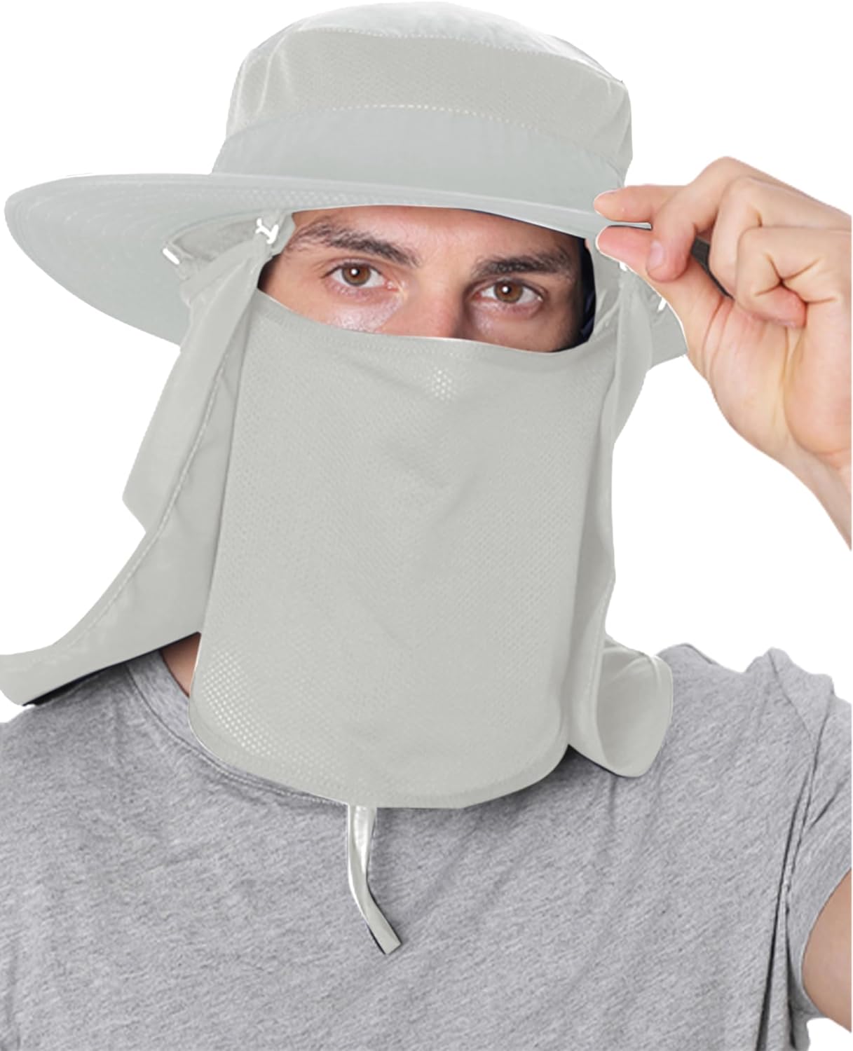 Mens Sun Cap Fishing Hats Sun Hats Neck Face Flap Cover Windproof Wide Brim Hat For Men&Women Summer Outdoor Work Gardener Travel Hat UV Protection UPF 50+ (Light Grey)