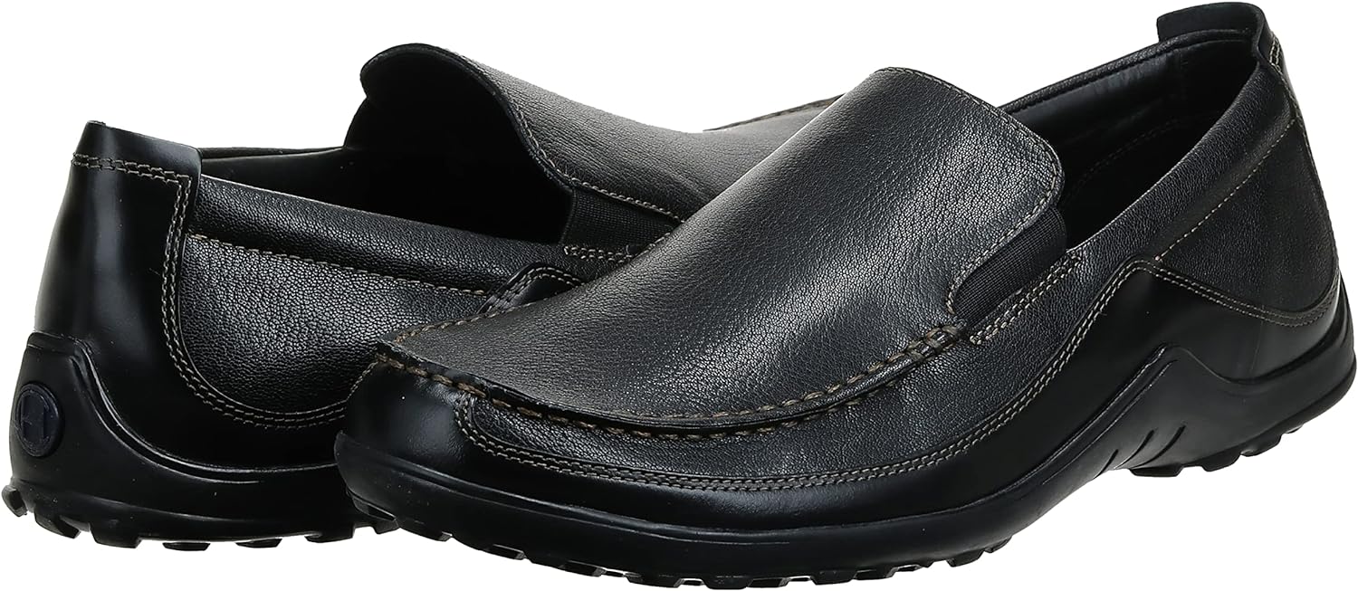 - Sport-inspired dress loafer with waxy leather finish