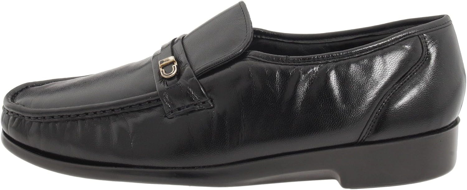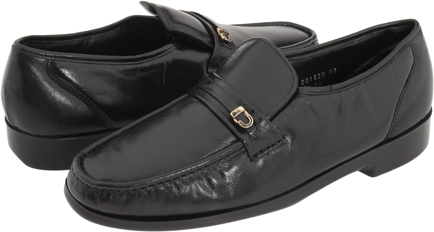 Men's Florsheim, Milano A dress loafer with a SOFT LEATHER UPPER DECORATIVE metal BUCKLE an AIRPORT FREINDLY style lightweight blown RUBBER SOLE.