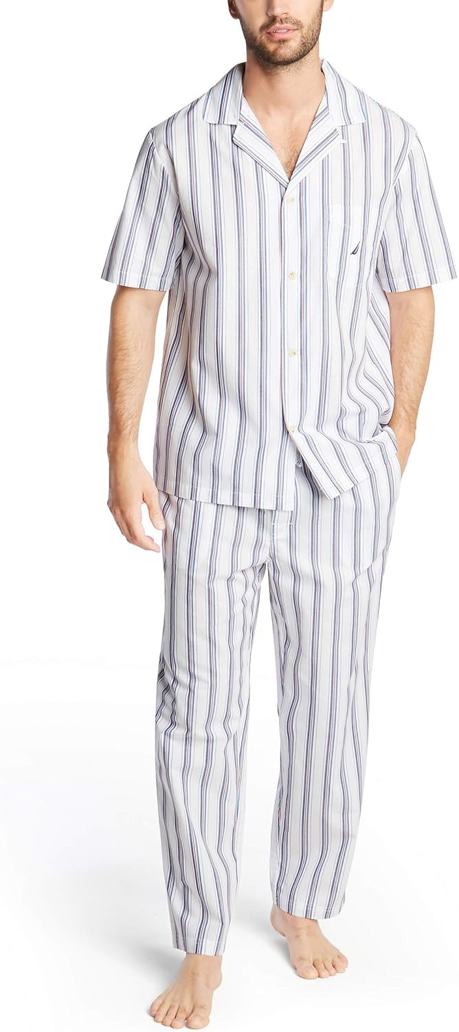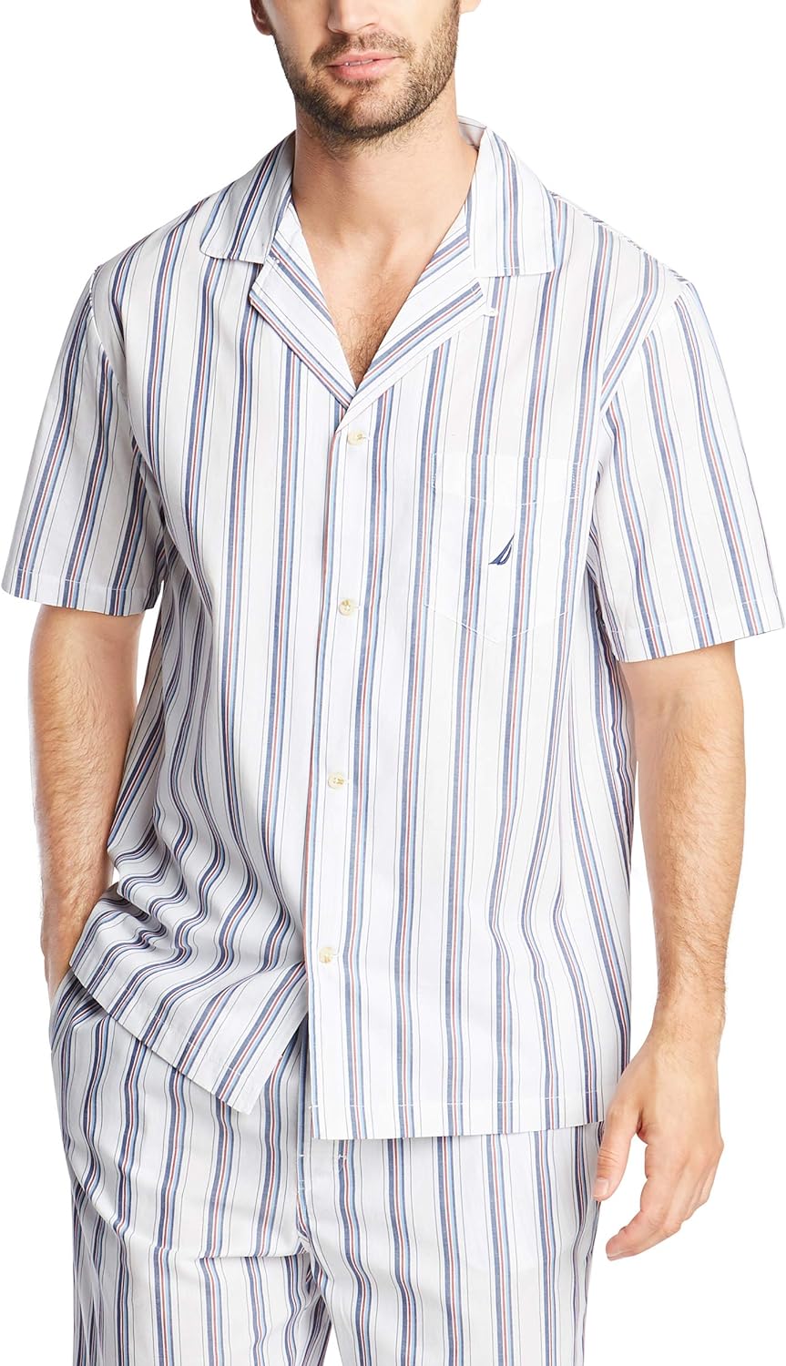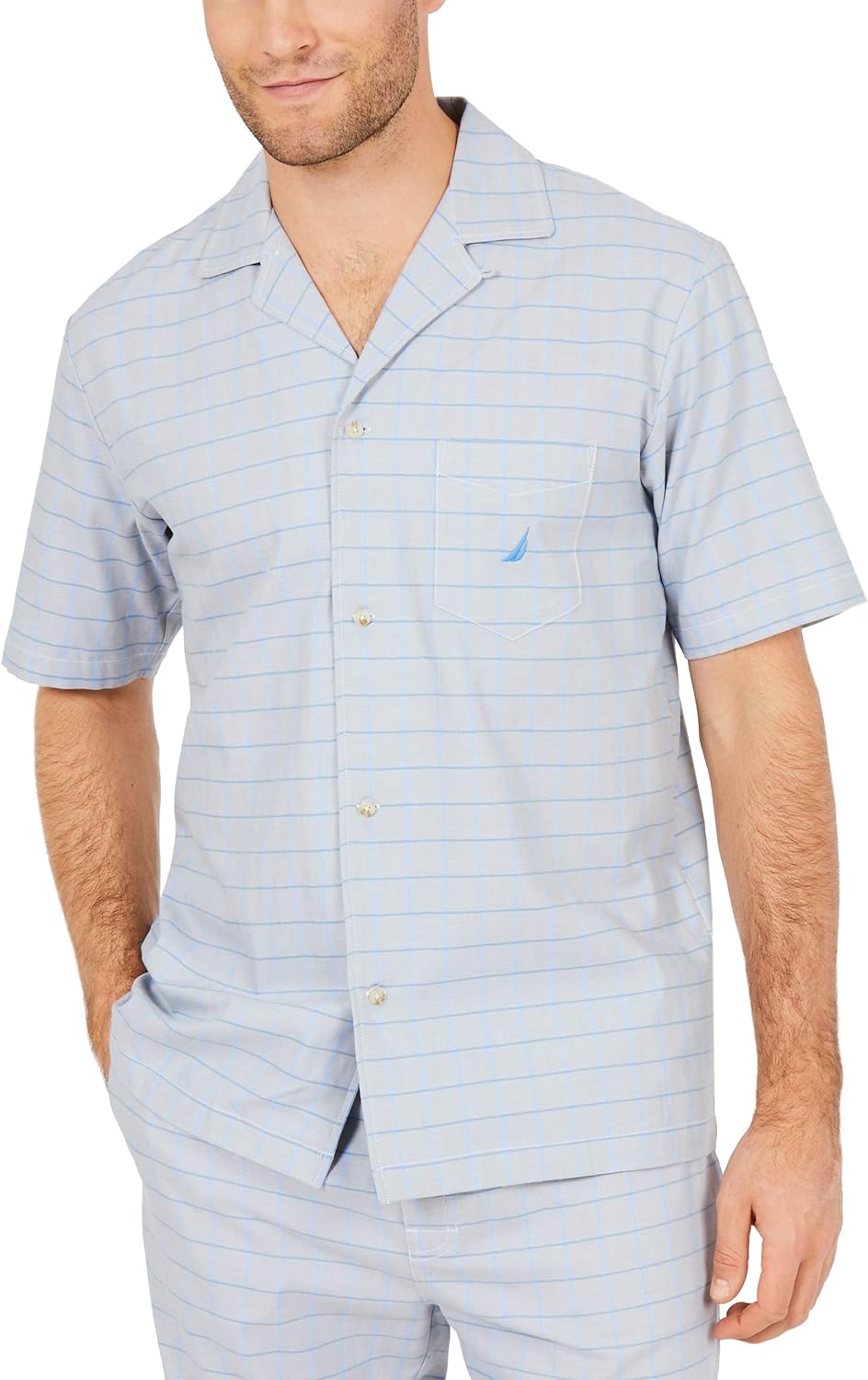 Nautica Men's Short Sleeve 100% Cotton Soft Woven Button Down Pajama T – BUYO