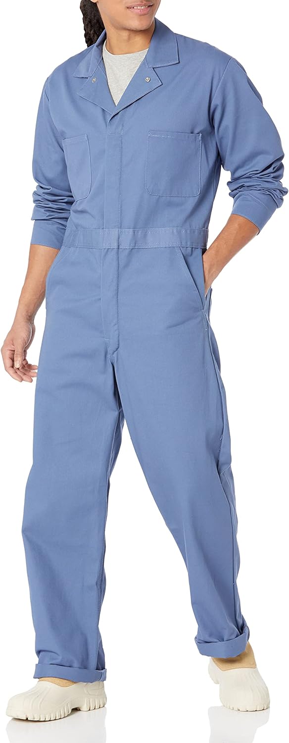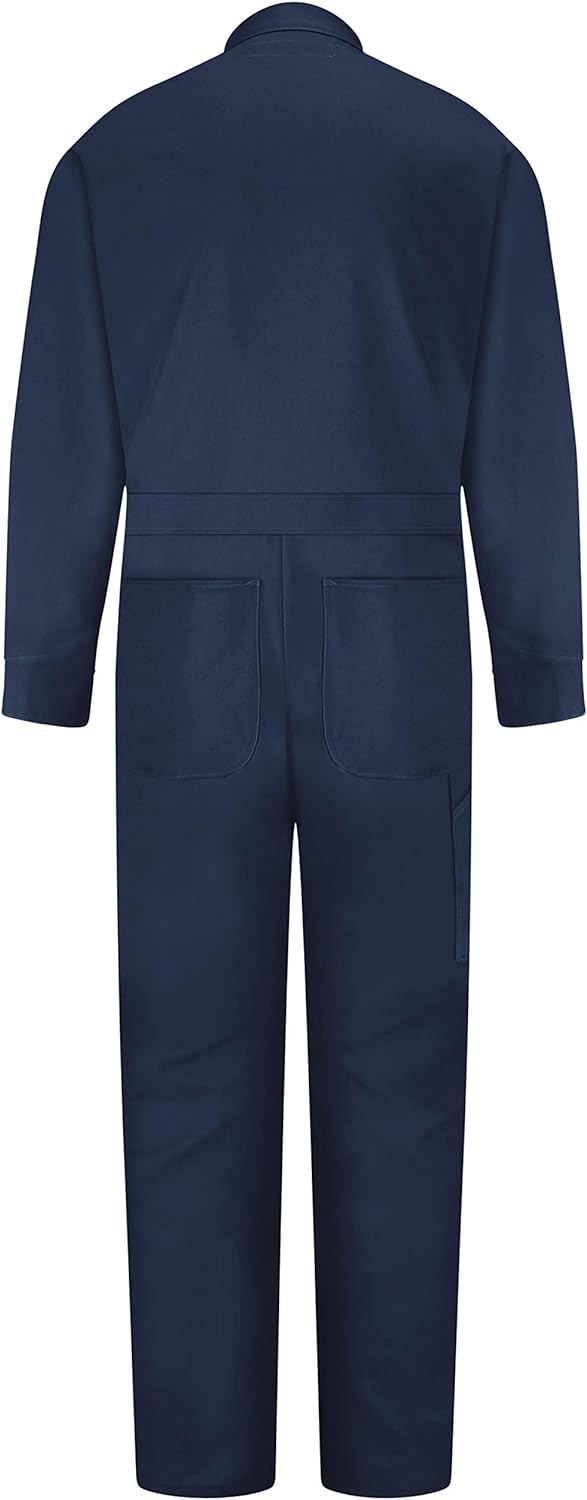 Red Kap Men's Snap Front Cotton Coverall. Made with 100% preshrunk cotton. Oversized fit allows for wearing over clothes. Multiple, strategically placed, pockets. Step into these work coveralls and get your job done without worrying about grease or grime. The oversized fit allows you to wear these over your clothes while the preshrunk fabric reduces shrinkage. This shrink-resistant oversized coverall has a snap-front closure for easy on-and-off and you'll enjoy the convenient storage of the rule pocket. If you work in automotive, maintenance or other messy jobs, do yourself a favor and cover up with this snappy work coverall.. The Red Kap Done Right Guarantee: PROVEN DURABILITY. Red Kap challenges industry experts to put our workwear to the test. We test, tweak, and repeat until it's Done Right. FUNCTION. Engineered with: 100% Preshrunk Cotton and all natural fibers for breathabilty and comfort.Consealed, Heavy Duty Snap Closures ensure for easy on/off.Two (2) Set-in front pockets.Two (2) Patch hip pockets.Two (2) Chest pockets.One (1) Rule pocket on right leg. DESIGNED WITH PRIDE. Red Kap Workwear is geared for the garage, crafted for the carmakers, and perfect for any job requiring some elbow grease. Join the 16 million American workers who go to work wearing Red Kap.