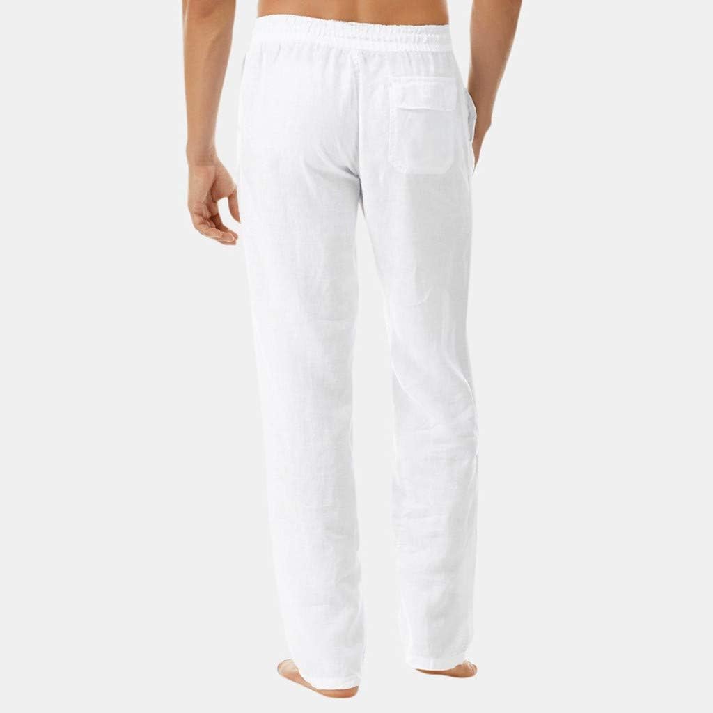 iNoDoZ Men's Summer Loose Simple Long Pants Solid And Fashionable Pure Cotton And Linen Trousers