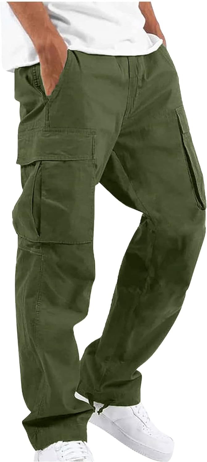 YAOHUOLE Men's Cargo Pants Outdoor Pants for Men Casual Cotton Trousers Drawstring Elastic Waist