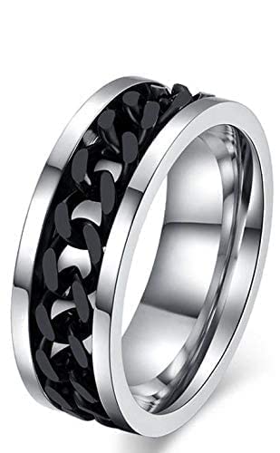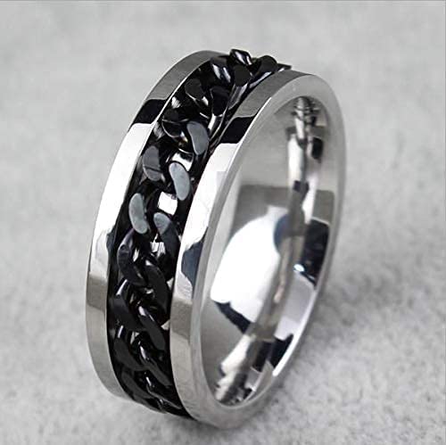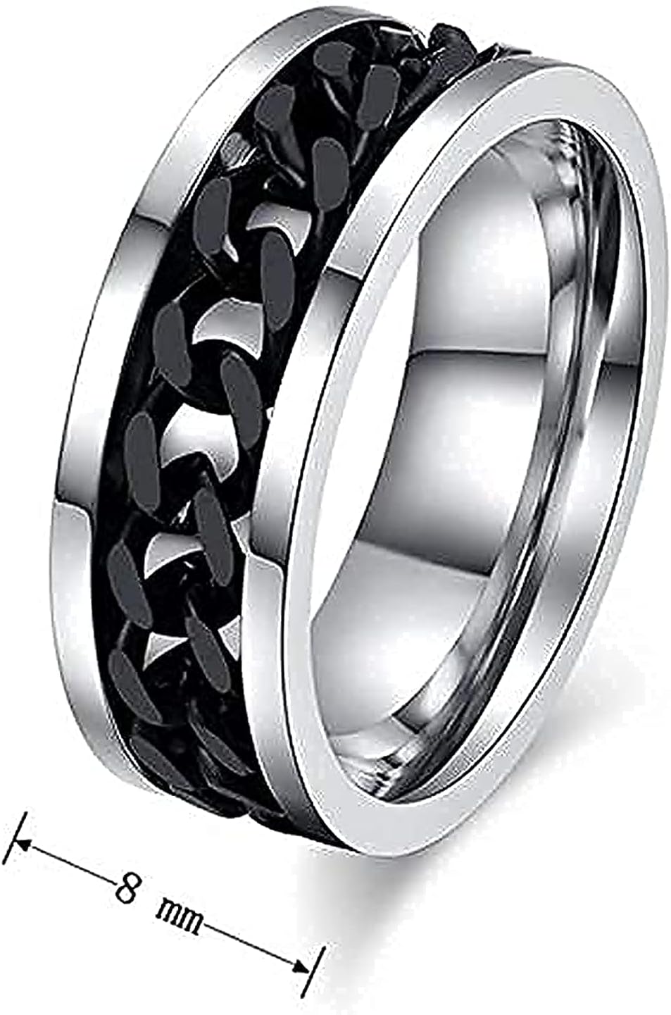 Titanium Steel Individual Rotatable Black Chain Fashion Cool Men Ring For Male Us8 Mr43