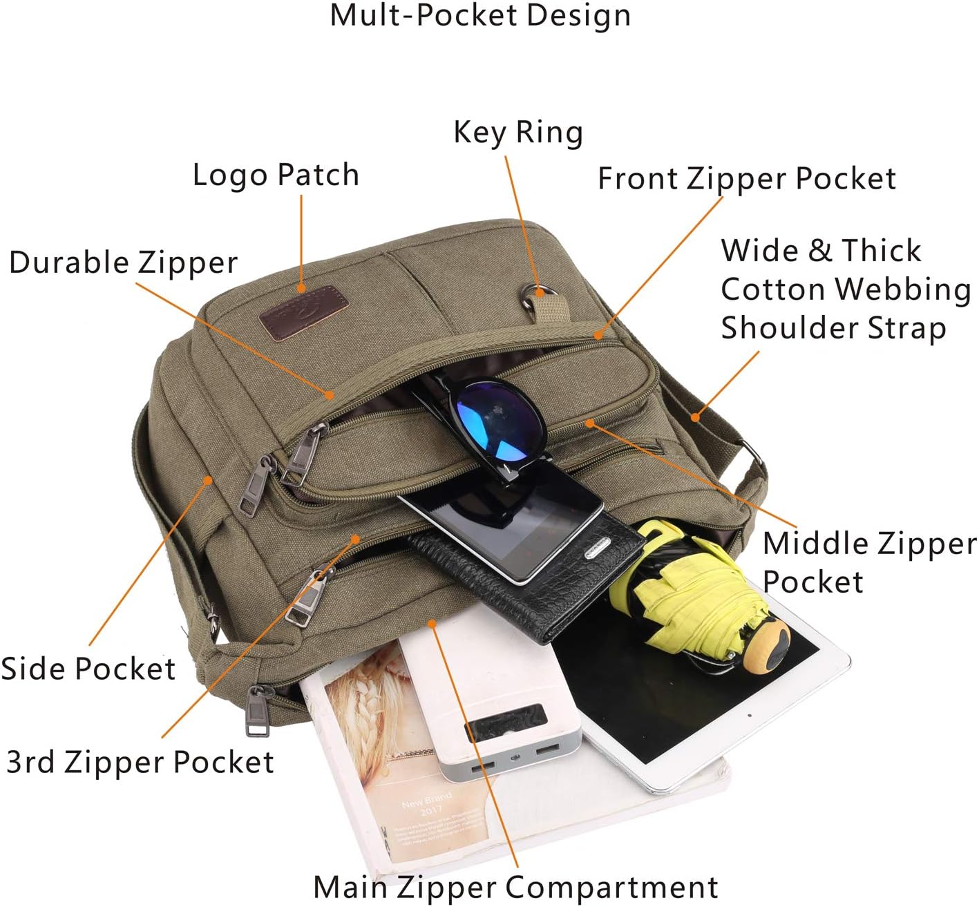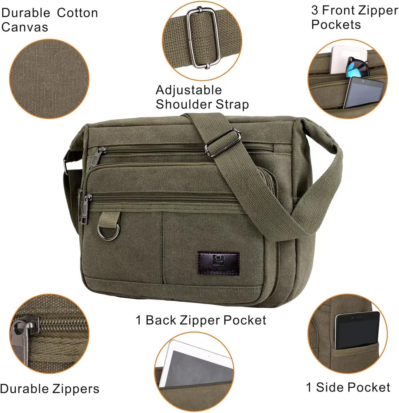 - PREMIUM MATERIALS & WORKMANSHIP. This canvas crossbody bag is made of high density washed canvas. With double stitches, this sling bag can sustain the rigours of day-to-day use without showing signs of fatigue. The zipper works very smoothly. This all-purpose sathel bag is great for gift, travel, sports, laptop, camera, book, work, business.
