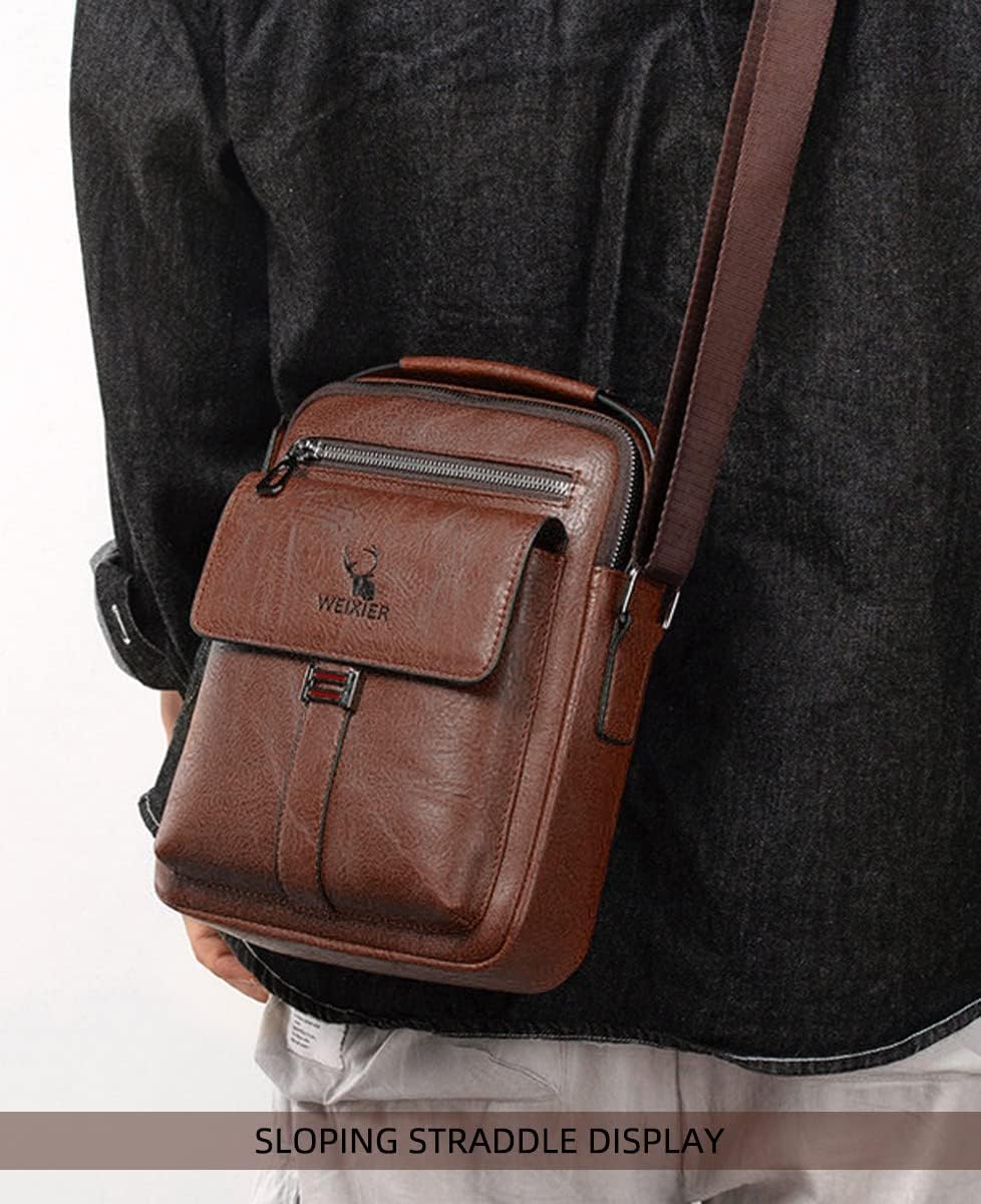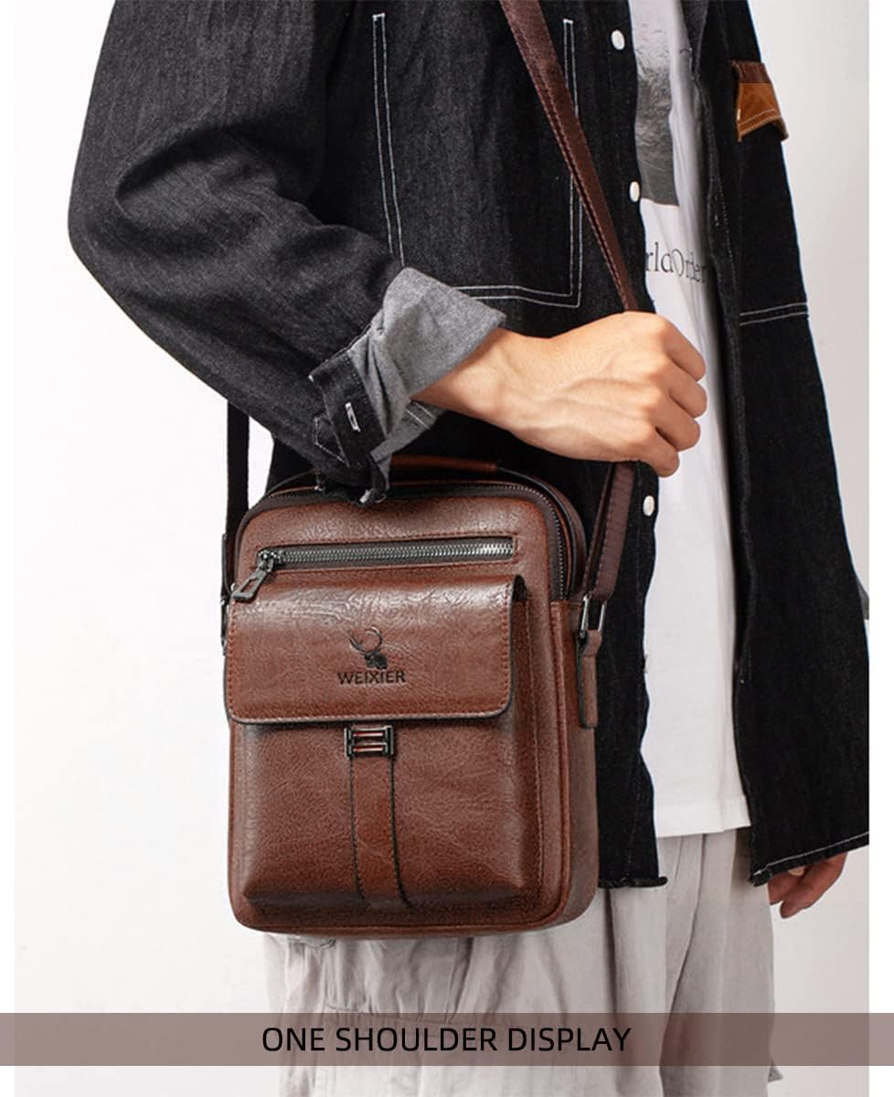 Feature:★ This men's messenger shoulder bag is made of durable PU leather, smooth and high-quality zipper, durable and easy to clean, the messenger bag has perfect finish, and the soft leather shows your outstanding temperament.★ Men crossbody shoulder bags has multiple pockets, which can hold iPad, mobile phone, wallet, passport, glasses, travel documents, mobile power, flashlight, pen, keys, etc.★ Men's shoulder bags have top handles and adjustable shoulder straps (the shoulder straps are not removable). You can make corresponding adjustments to ensure comfortable wearing and bring you more fashion and happiness.★This stylish retro messenger bag can used as a crossbody bag, shoulder bag, sling bag, business messenger bag, business wallet/purse, It can be easily put in a backpack, duffel bag or suitcase when traveling.★ Men's messenger bag, shoulder bag, business crossbody pack is very suitable for business, travel, cycling, walking, outdoor, hiking, hunting, tactics, fishing, camping, shopping, leisure and work.★ Men PU Leather shoulder messenger bag Crossbody Handbag is a nice present for father, husband, and all male friends.Mens PU Leather Messenger Shoulder Bag Travel Business Crossbody Pack Vintage Cross Body Handbag Casual Messenger Satchel Side BagSpecifications:Material: PU LeatherColor Options: Black, BrownDimensions: 8.1" x 3.15" x 9.44" (20.5x 8 x 24 cm)Weight: 0.35KGPackage including:1 x Mens PU Leather Shoulder Bag