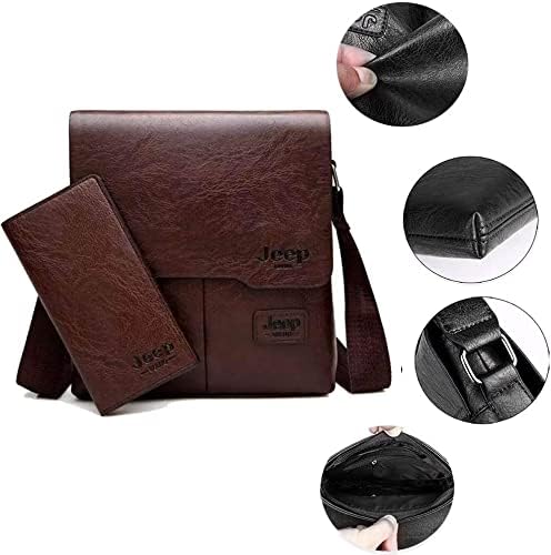 Targeted Group : Unisex Handbag Type : Shoulder Bags Material : Leather Color Family : Brown Main material: soft faux leather nylon inner, durable men shoulder bag. There are two products with wallet and shoulder bagMain pocket & inside cellphone and zipper pocket.Adjustable shoulder strap for easy and comfortable carrying, Can be used as a messenger bag or crossbody purse for men.Overall dimension: Approx. 8.6"L x 8.9"H x 1.18W",Can put in iPad mini,iPhone,Mobile power supply,wallet and so on [ High Quality Split Leather ] , famous designer, carefully create a classic men's bag.
