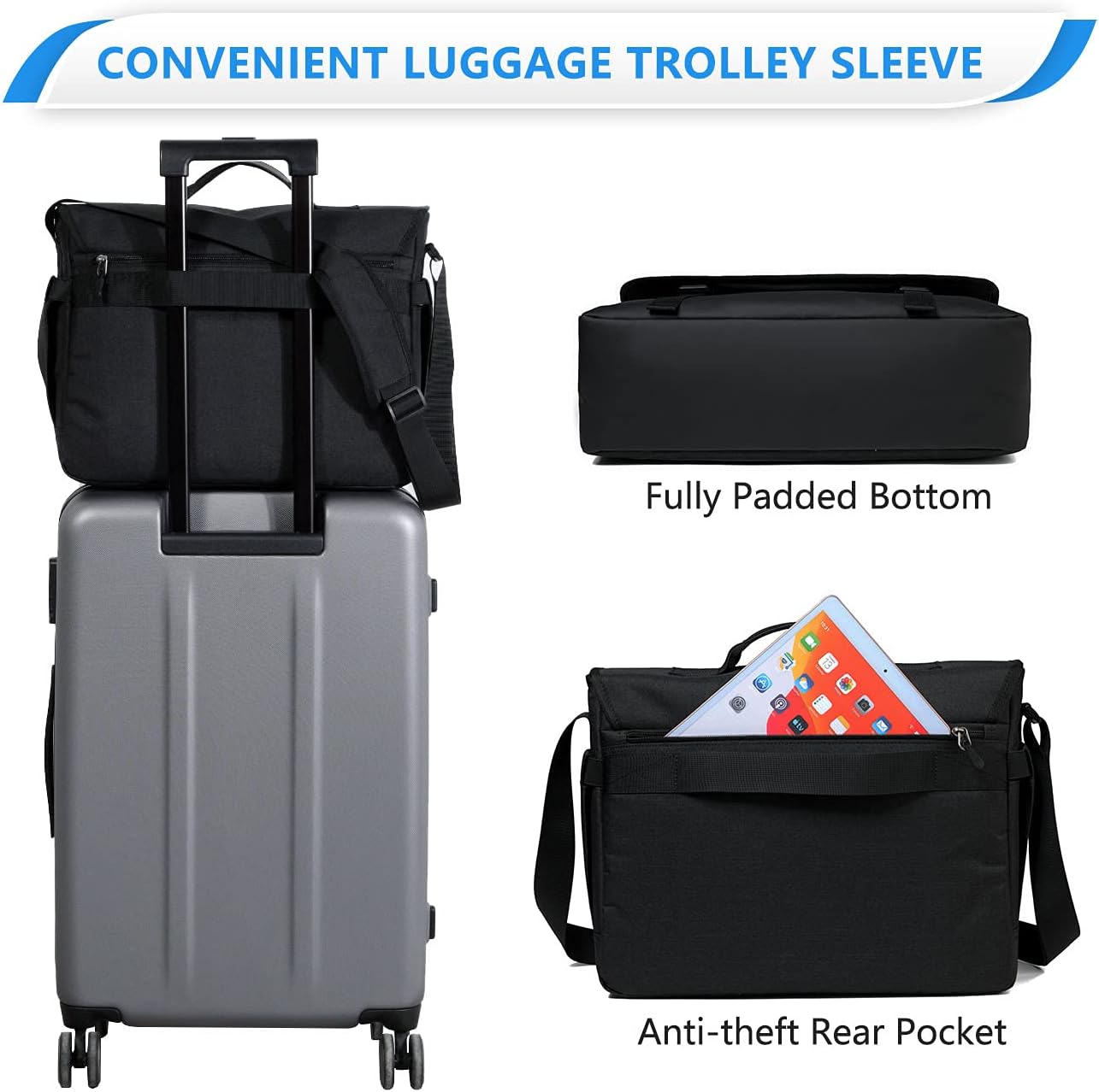 - √STYLISH&WATER RESISTANT: The fashion messenger bag is made of high-quality Polyester which is water resistant and durable. The padded shoulder pad of the adjustable shoulder strap makes carrying the shoulder bag comfortable. This men's satchel bag features a flap cover which closes with two anti-theft buckles. A zipped pocket on the flap is perfect to keep your easy-to reach essentials. The luggage trolley sleeve on the back makes it easy to take the briefcase traveling or for a business trip.