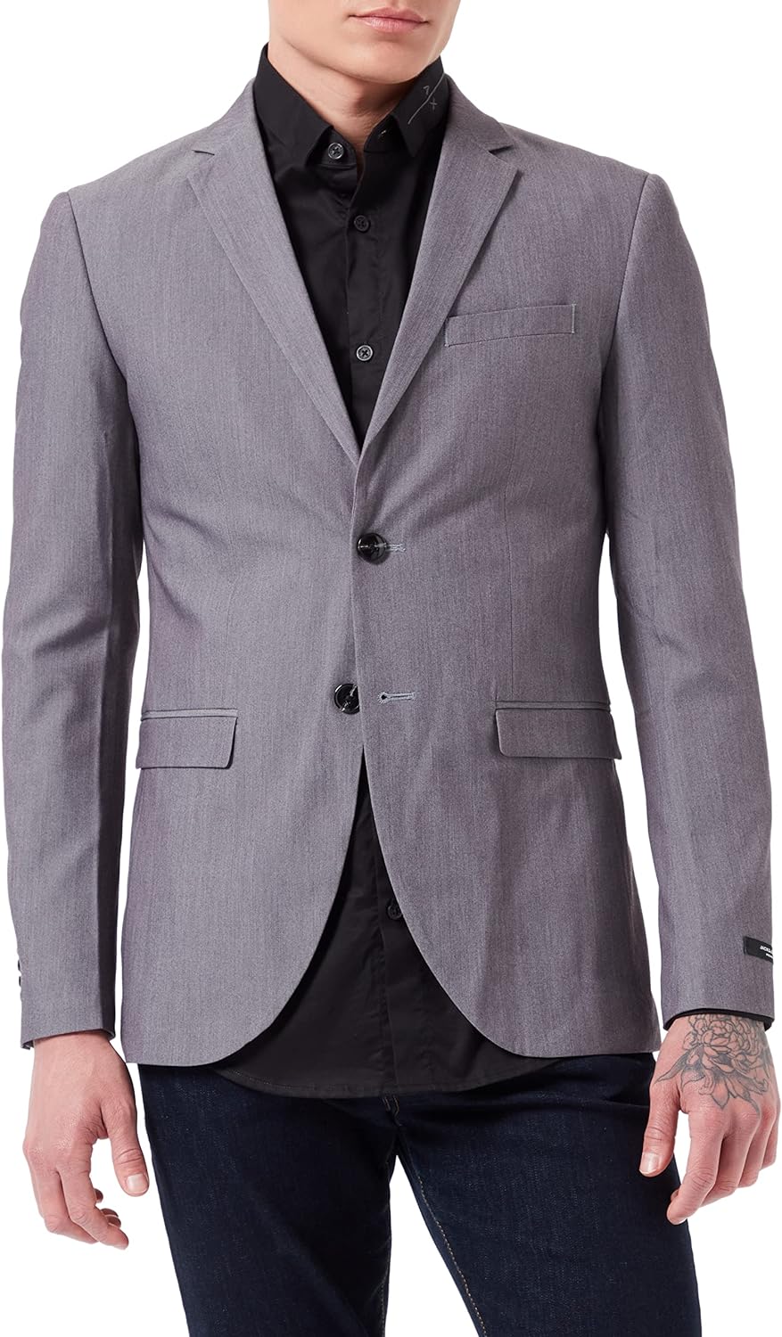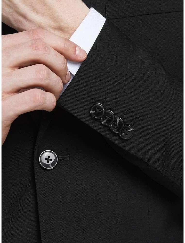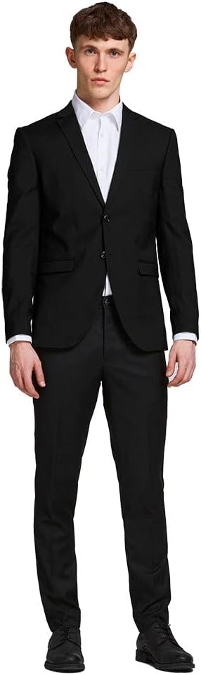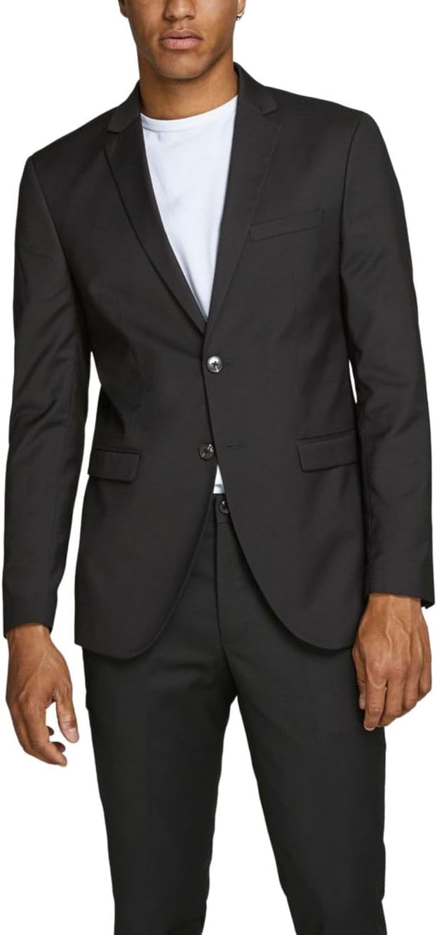Black formal blazer cut in a slim fit with double button closure. Layer over a shirt and pair with formal trousers for a statement look.