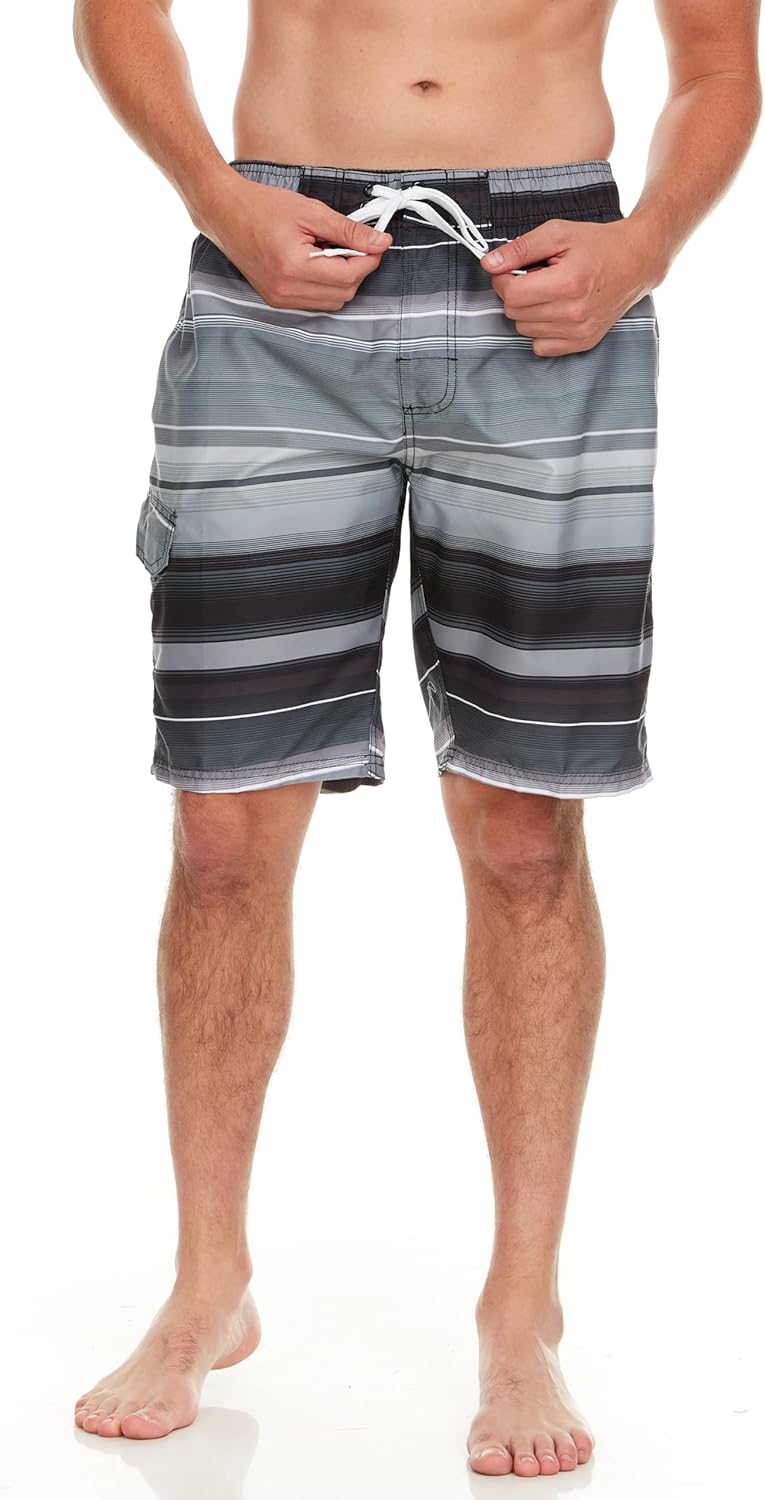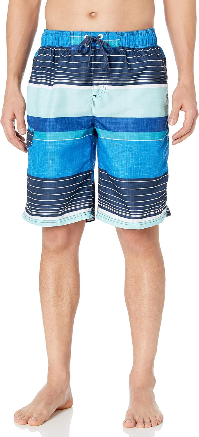 Kanu Surf presents our newest swim trunks yet. Whether headed to the Beach or the Pool or just lounging around on a hot day, Kanu Surf, a surf and swim lifestyle brand, is well known for great prints and colors along with high quality functional apparel for the whole family. All of our swim trunks are made with our comfort, technology quick dry fabric with a UPF rating of 50+. All trunks have 2 side pockets. Some swimming trunks have 1 or 2 cargo pockets as well. Most trunks feature triple needle stitching at seams and rises for extra durability. These trunks have been built to last. Our range of prints includes Stripes, Florals, Tie-Dyes, Tropicals, Geometrics and conversational including Pineapples, Flamingos, Lemons, Boats, Parrots, Palm Trees & more. All trunks have a mesh lining. Matching styles available in kids sizes so Dads and Kids can hit the beach scene as a team. Check out our many Kanu Surf rash guards and swim shirts to make a great set.