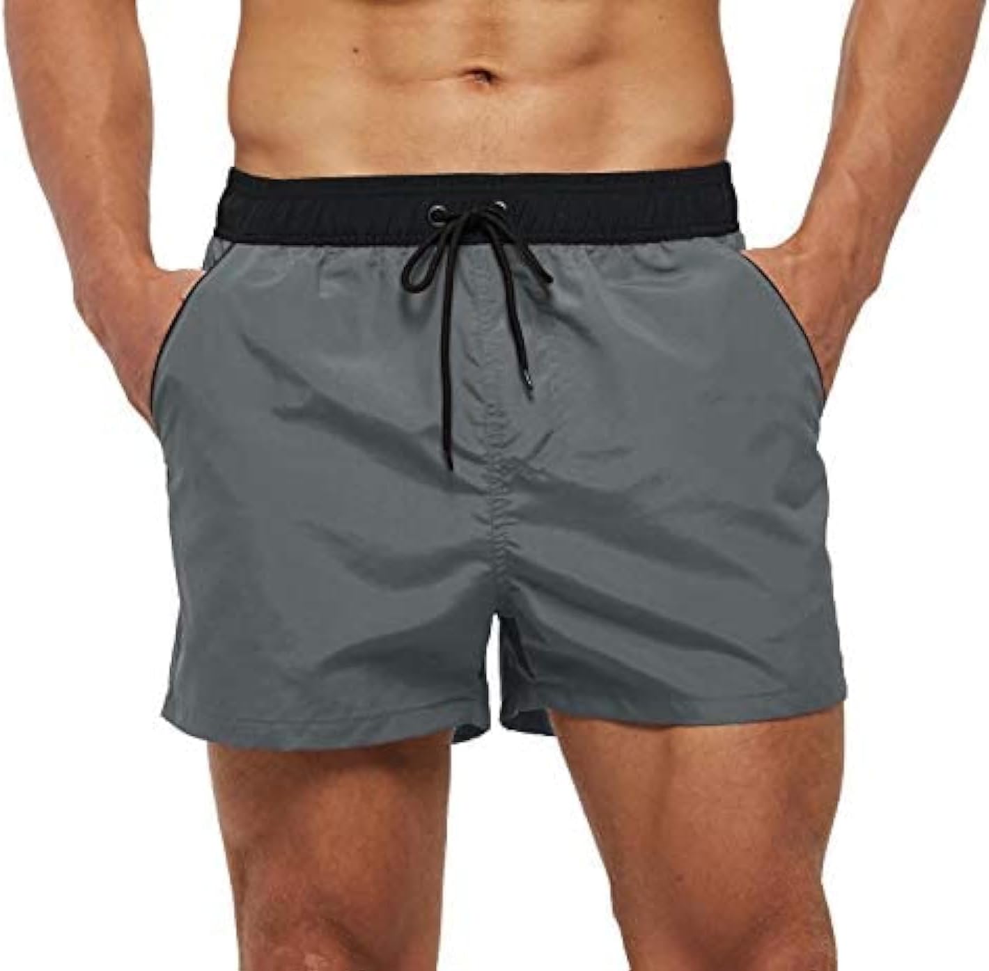 KAYIL Men's solid swim trunks bring simple, versatile style to your swimwear Visual Features : Perfect for both formal and informal pool parties. Fabric Features :100% Nylon fabric, lightweight and good ventilation, quick dry and comfortable. Water repellent coating makes you look great when getting out of the water and won't cling to your body. Pockets Features :Not only have large pockets on both sides and back pockets, to ensure the safety of important items. Activities Range : Leisure activities at home, beach hangouts, swimming, gym or surfing and other water activities