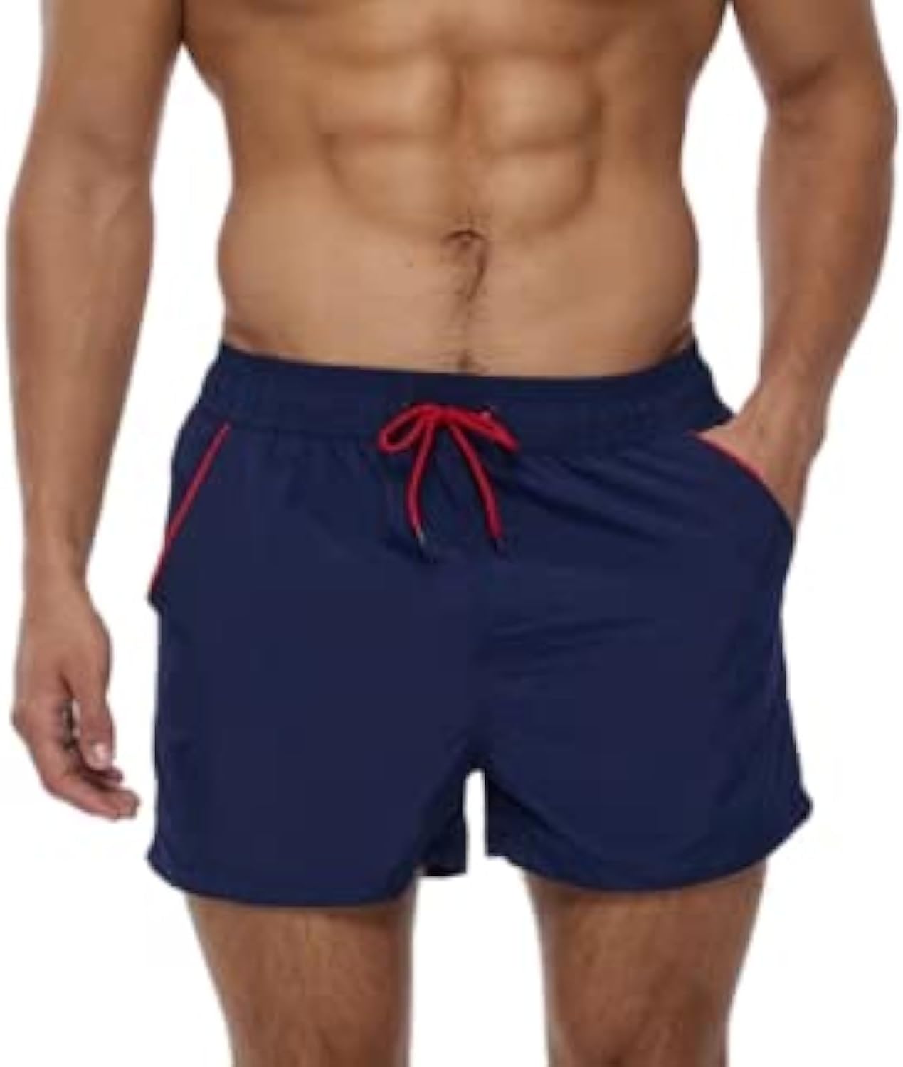- These men's swimwear are shorter sexy trunk, above the knee that has a tailored fit, water repellent coating makes you look great when getting out of the water
