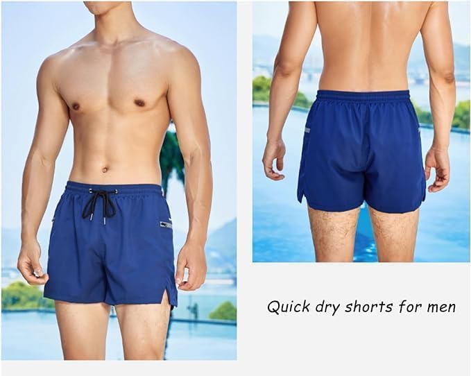 - Quick Dry Stretch Fabric: Made of 90% polyester and 10% spandex,. The fabric is truly flexible and comfortable and doesn't constrain your movement. It dries quickly, so you don't have to sit around with wet pants after swimming.