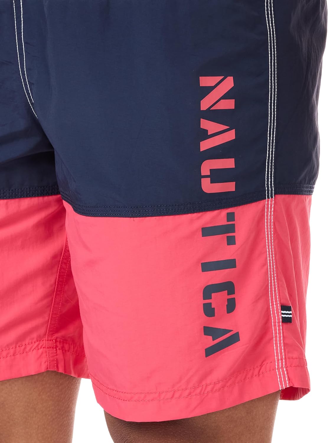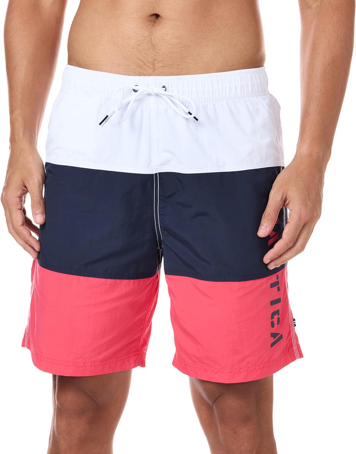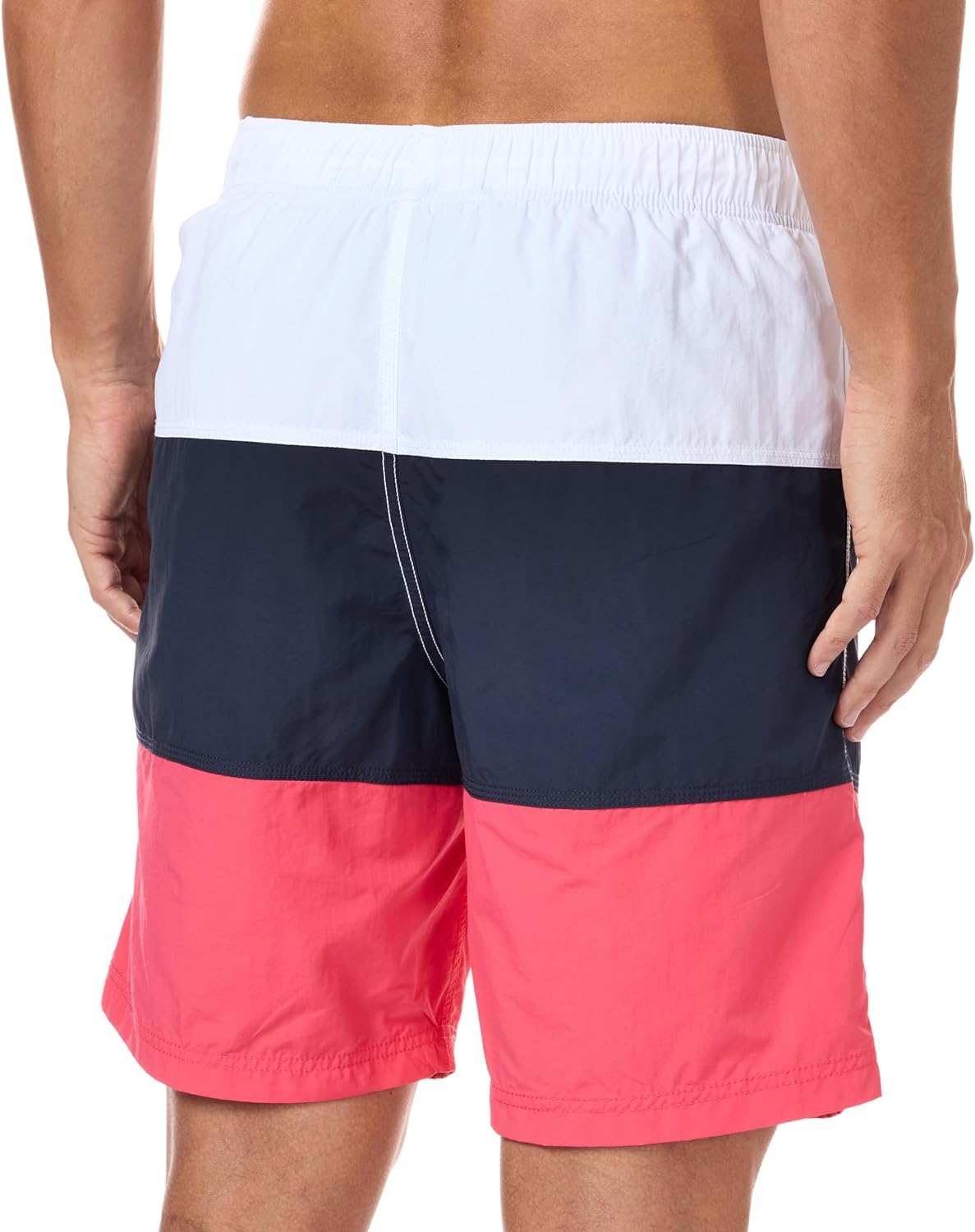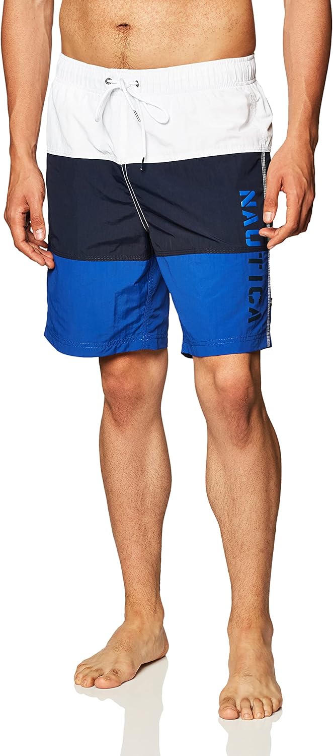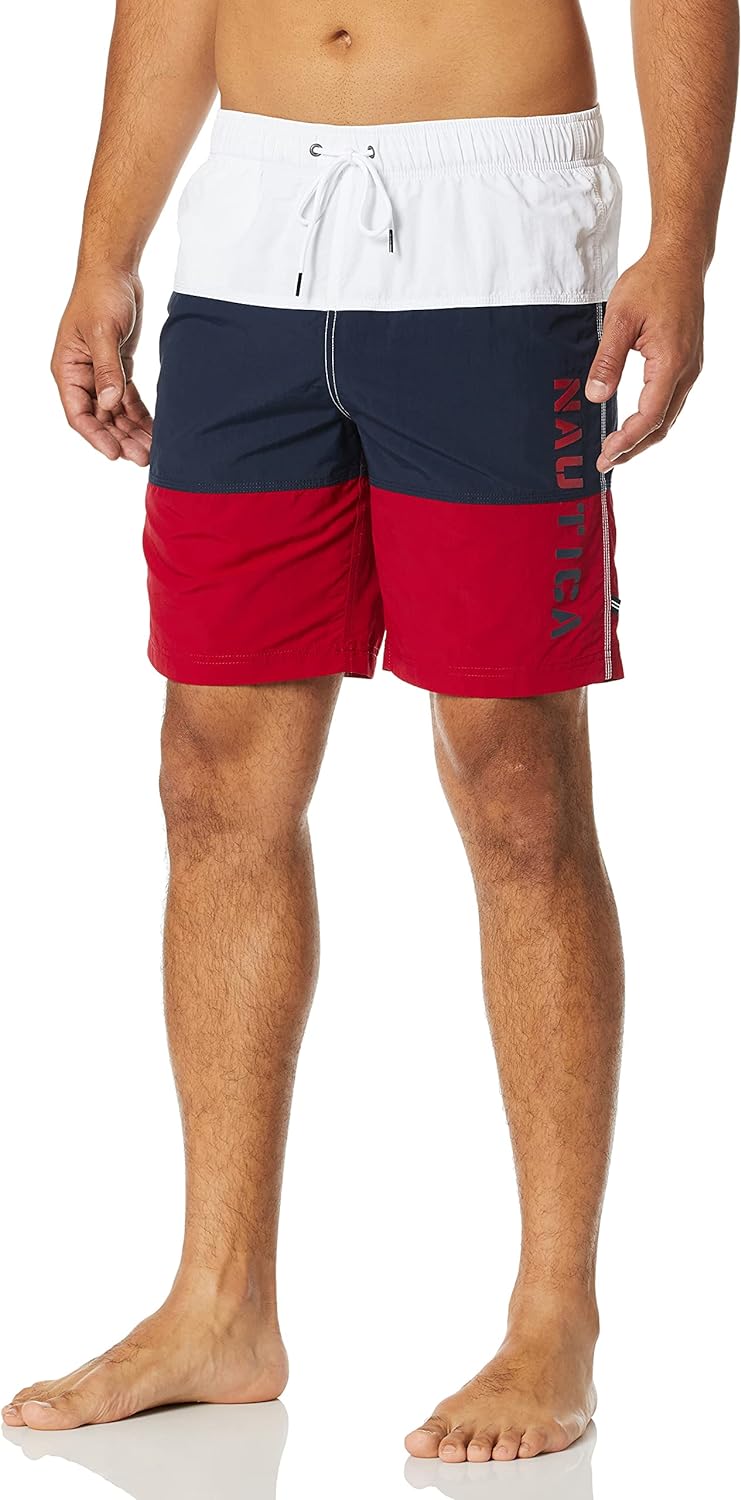 - Quick dry swim trunk with color block design and elastic waistband